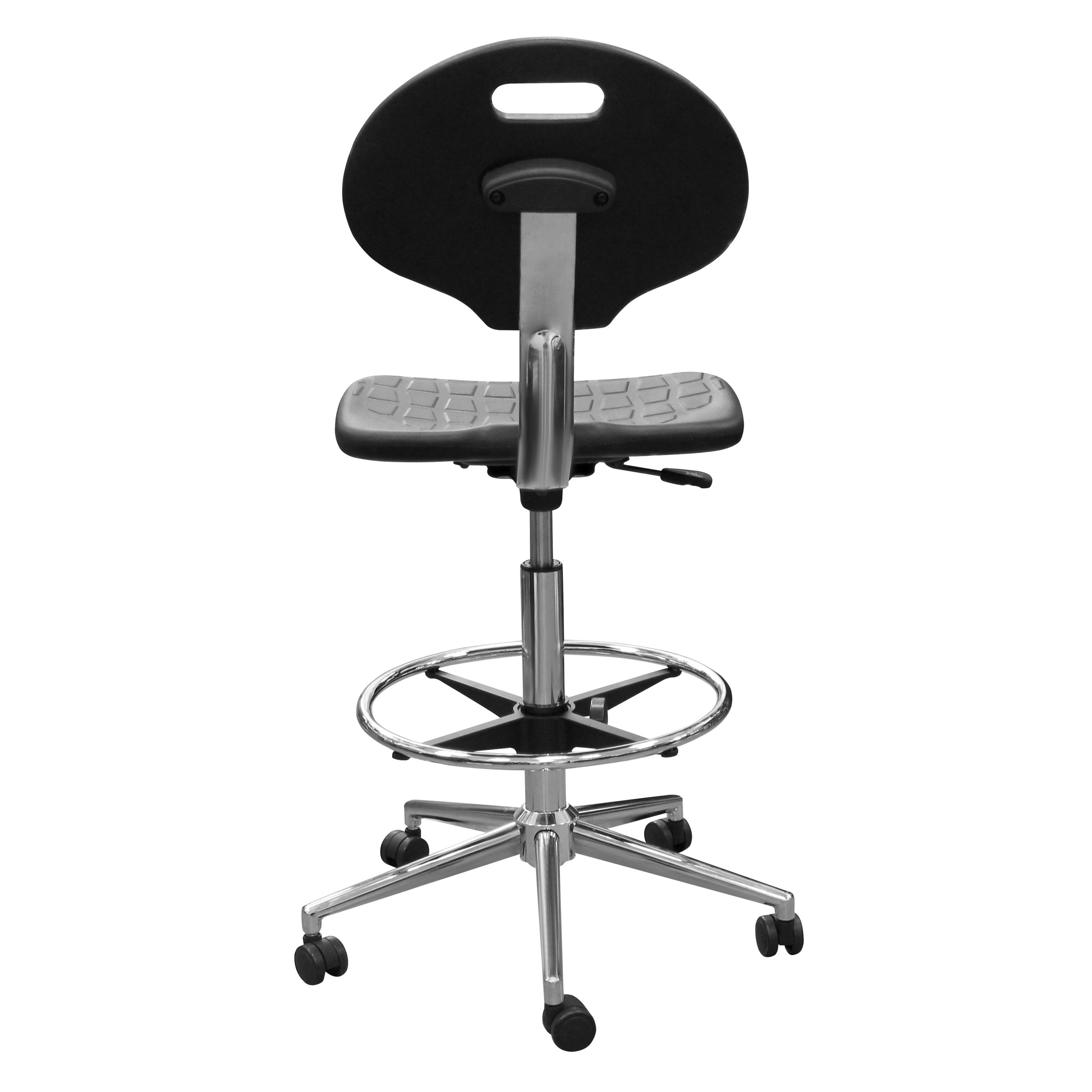 Кресло предназначено для столов с высотой рабочей поверхности от 900 мм и выше. Высокая посадка и опорное кольцо для ног дают правильную опору и снимают нагрузку при длительной работе.