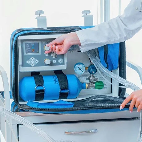 Аппарат ИВЛ Аксион А-ИВЛ-Э-03 — высокотехнологичный портативный прибор для принудительного или вспомогательного поддержания недостаточности дыхательных функций или невозможности их осуществления естественным путем.