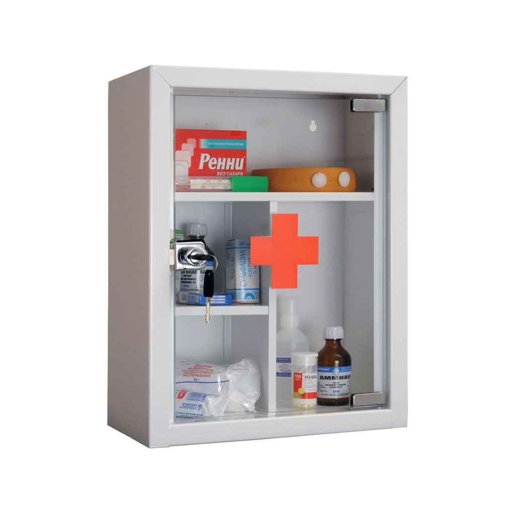 Корпус аптечки для хранения медикаментов для оказания первой помощи выполнен из тонколистового металла. Комплектацией данной модели предусмотрена стеклянная дверца c ключевым замком «Практик». В аптечке четыре внутренних отделения. Предусмотрено также крепление аптечки к стене, однако ее можно разместить и на любой ровной поверхности. Магазин медицинской и лаборантской мебели МедМебель поможет быстро оформить заказ на аптечку по самой доступной в Москве цене и доставит ее по указанному при заказе адресу.