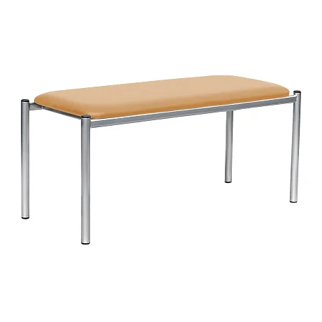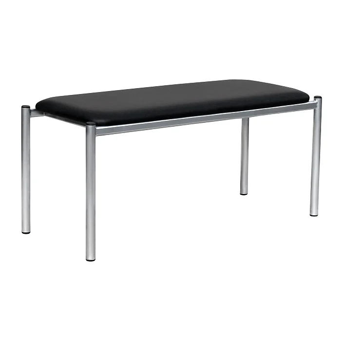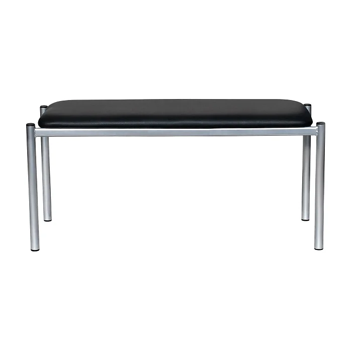 Основа банкетки — сварной металлический каркас. Опоры выполнены из стальной холоднокатаной электросварной трубы диаметром 30 мм со стенкой 1,5 мм. Такая база хорошо держит нагрузку, сохраняет геометрию и устойчиво стоит на полу даже при активной эксплуатации в местах общего пользования.
