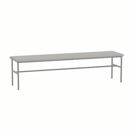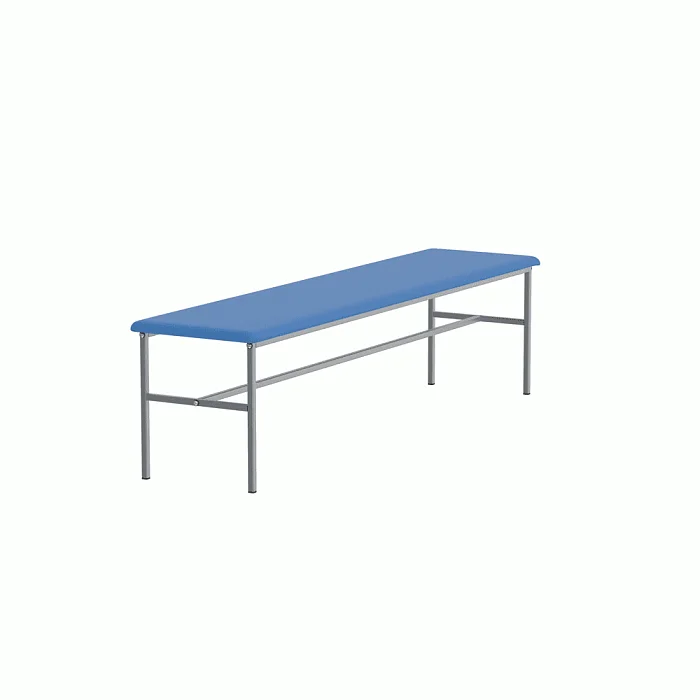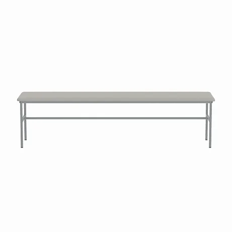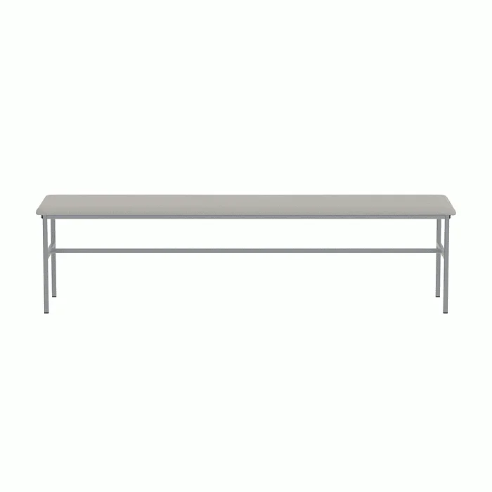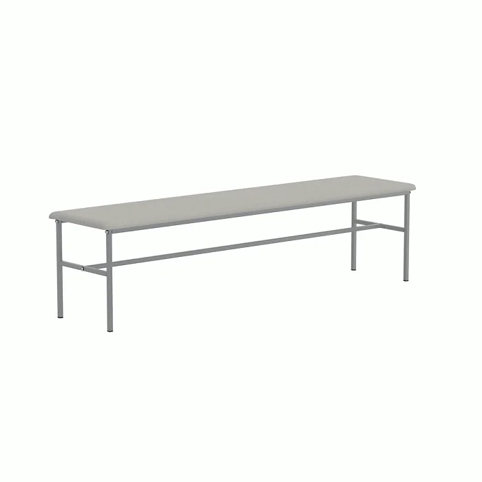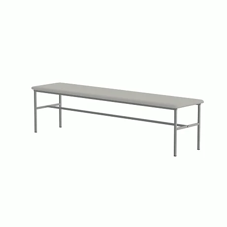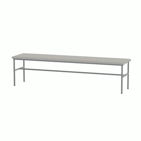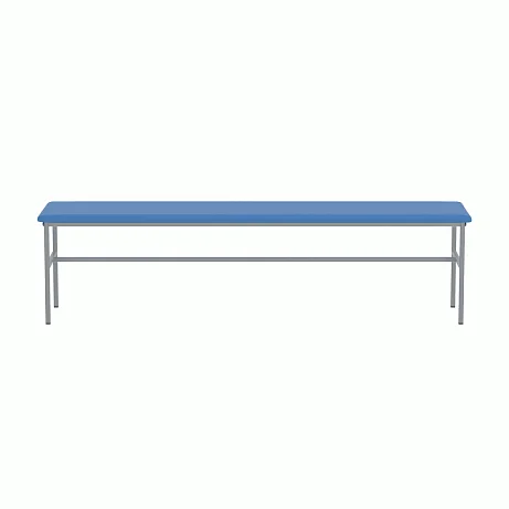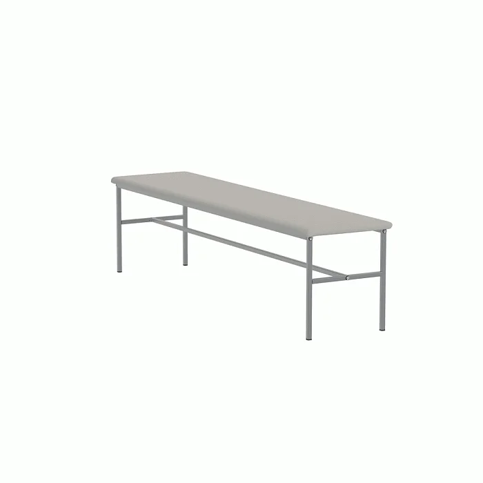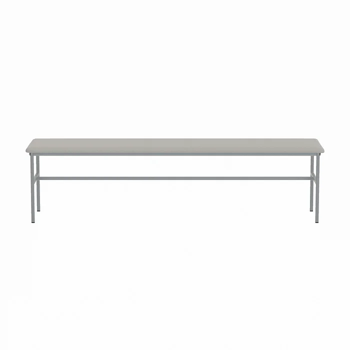 Банкетка без спинки, базируется на каркасе из стальных труб, окрашенных полимерной порошковой краской. На каркасе закреплено сидение из ДСП, рассчитанное на 3-х человек. Сидение имеет настил из пенополиуретана и обтянуто искусственной кожей светло-серого цвета под мрамор. Опоры нерегулируемые. Две планки соединяют боковые опоры. Конструкция разборная. Заказать такую модель банкетки можно, позвонив в магазин МедМебель, специализирующийся на реализации такого вида мебели. Также преимуществами МедМебели являются быстрая доставка и хорошие цены.