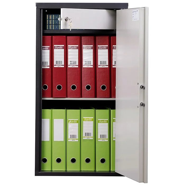 Сварная конструкция из прочной стали, внутреннее большое отделение, разделенное переставной полкой по вашему усмотрению, а также маленькое отделение для банкнот и ценных документов. Два ключевых замка и один электронный на лицевой дверце шкафа обеспечат надежную защиту содержимому бухгалтерского шкафа. Достаточно вместителен и удобен в эксплуатации, идеально подойдет для любой бухгалтерии. Купить такую модель шкафа можно уже сейчас, обратившись к представителям специализированного поставщика МедМебель в Москве.