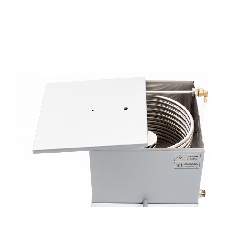 Конструкция продумана для реальной эксплуатации: доступ к камере кипения открыт через съемную крышку, а разборный охладитель и съемный теплообменник упрощают регламентное обслуживание без привлечения сервисной бригады. В штатной комплектации поставляется все необходимое для подключения и точной настройки — от шлангов и хомутов до высокоточного крана регулировки расхода и термометра. Такая комплектация позволяет быстро ввести прибор в работу и контролировать выходные параметры без дополнительных закупок.