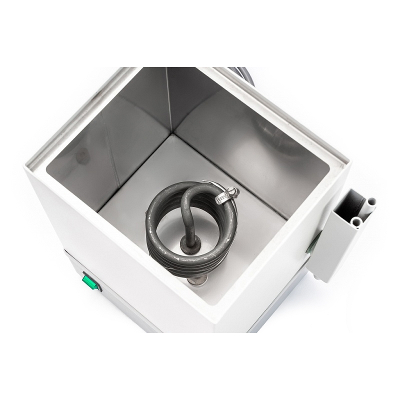Контактная группа выполнена из нержавеющих сталей, устойчивых к коррозии и термическим нагрузкам. Нагревательный элемент рассчитан на длительную эксплуатацию в условиях периодической минерализации поверхности, а капиллярный термостат предотвращает перегрев. Разборная архитектура охладителя и съемный змеевик позволяют выполнять регламентные работы локально, без вывода всего аппарата из эксплуатации на длительный срок.