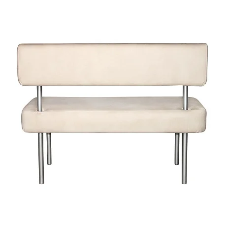 Диван поставляется комплектом из каркаса, сиденья и спинки. Крепление сиденья выполнено на саморезах — решение простое и понятное, удобное при сборке на объекте. Спинка монтируется на выступающие части каркаса и фиксируется посадкой «до упора».