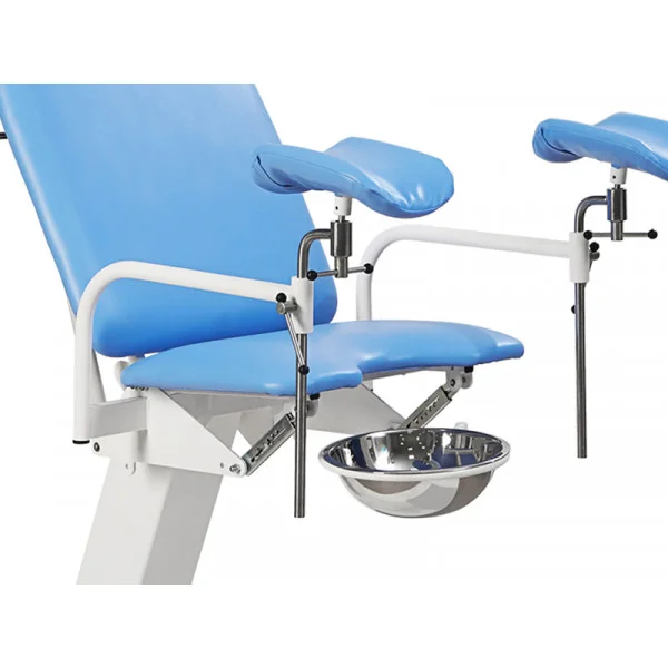 Гинекологический лоток из нержавеющей стали, съемный, круглой формы, установлен в поворотную рамку под тазовой секцией.