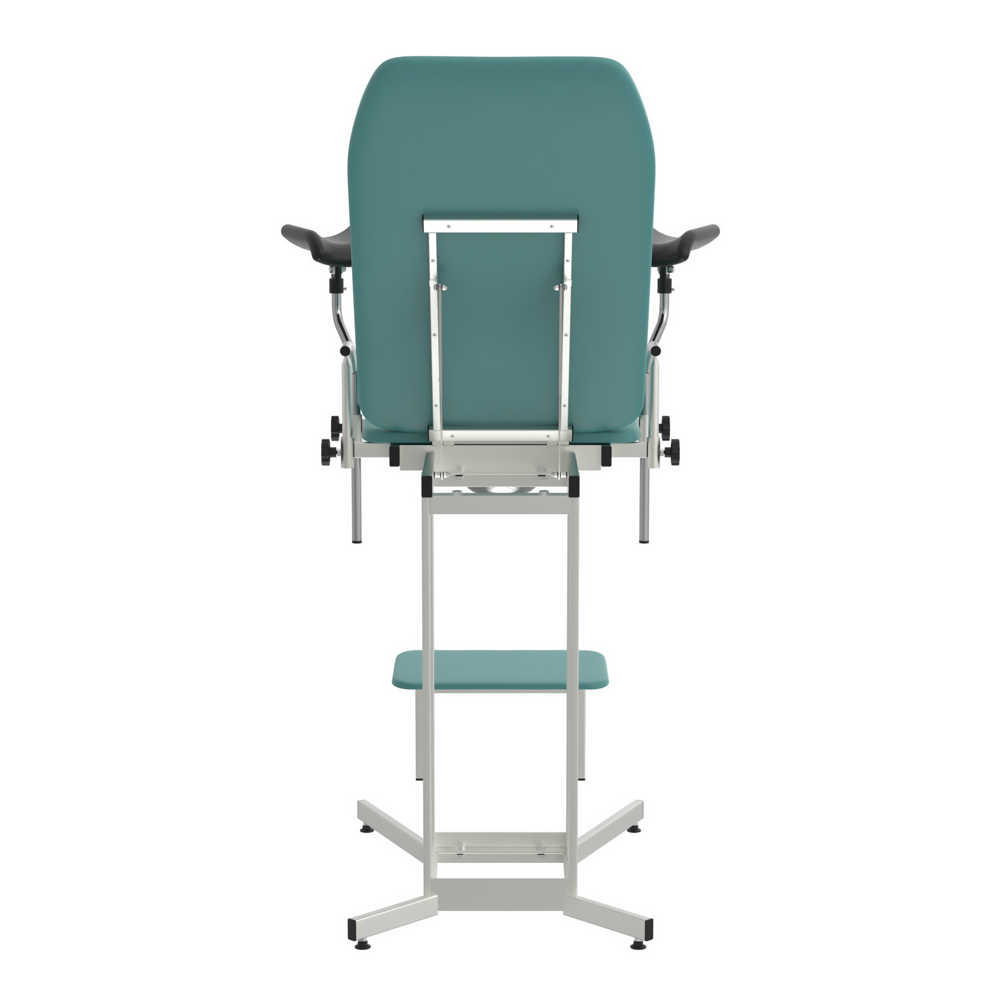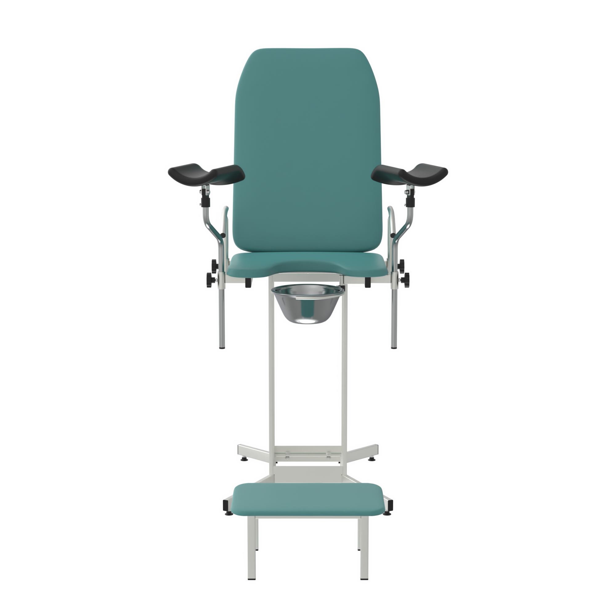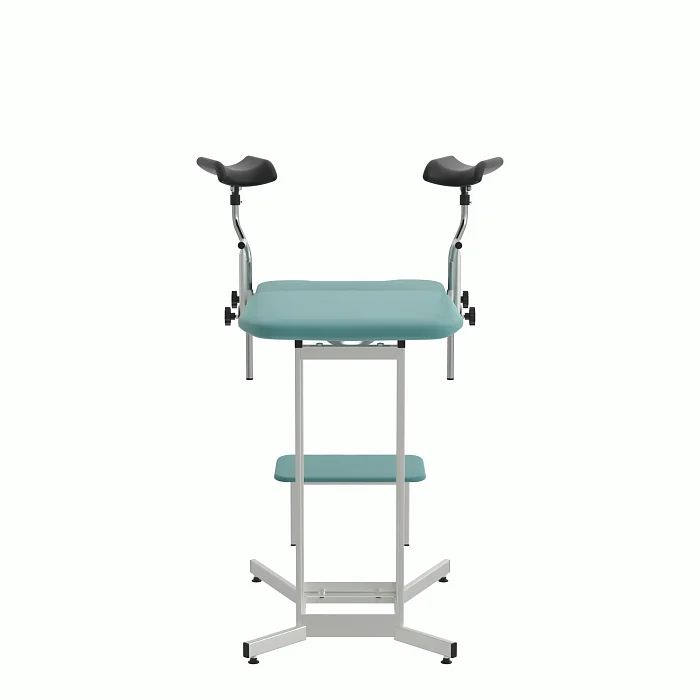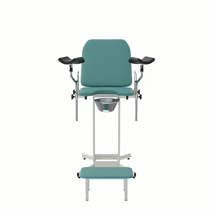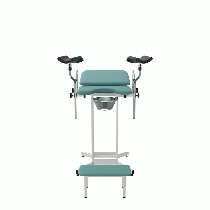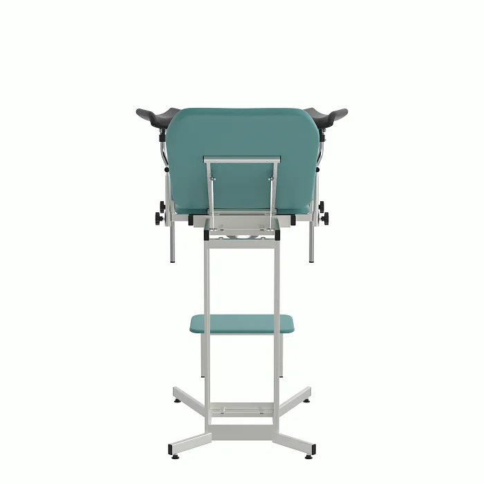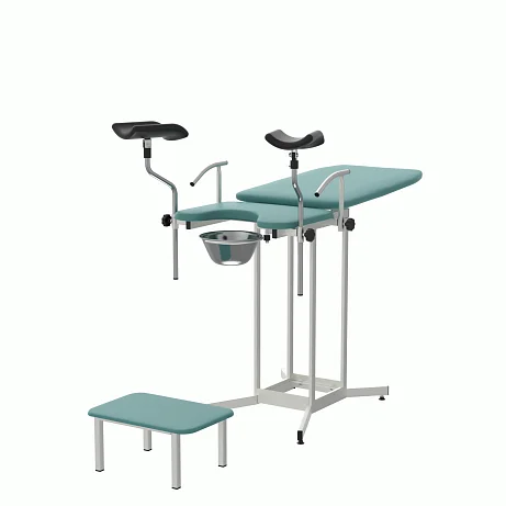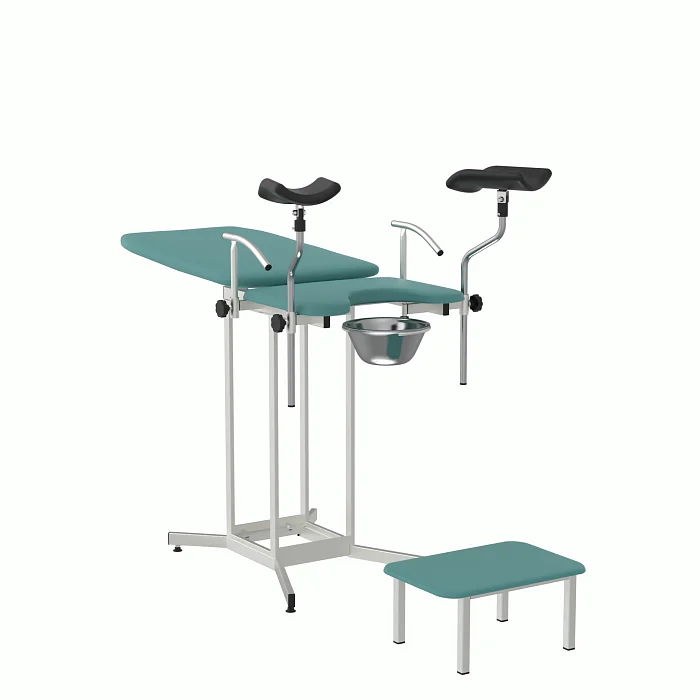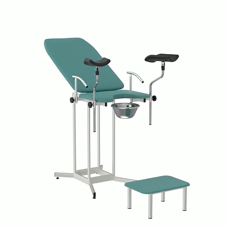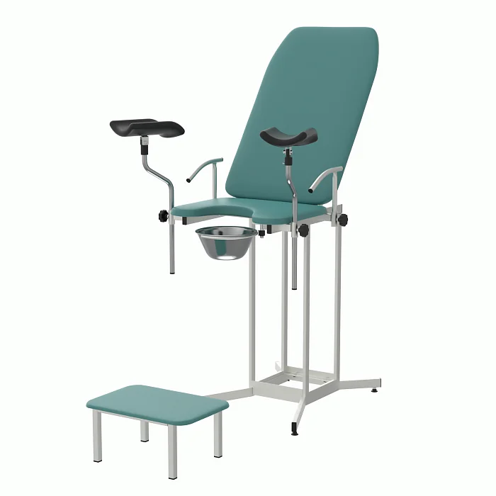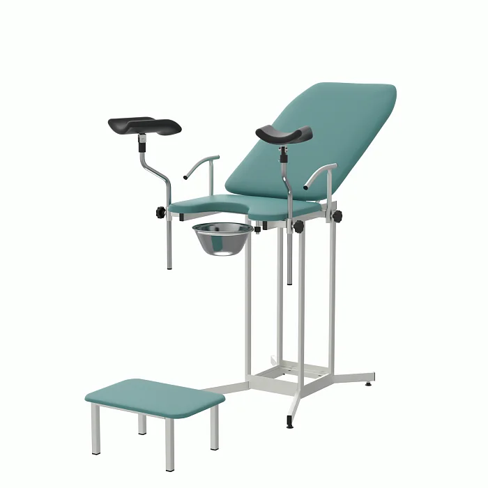 КГУ‑05.00‑Горское закрывает типовой спектр задач: первичные и повторные осмотры, взятие мазков, небольшие амбулаторные процедуры. Бирюзовая обивка визуально «охлаждает» пространство и снижает тревожность, что важно для комфорта пациентов. Конструкция проста, понятна и безопасна: без избыточных приводов, с чёткими механическими фиксациями и возможностью быстрой уборки между приёмами.