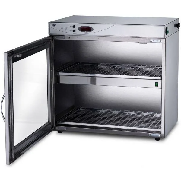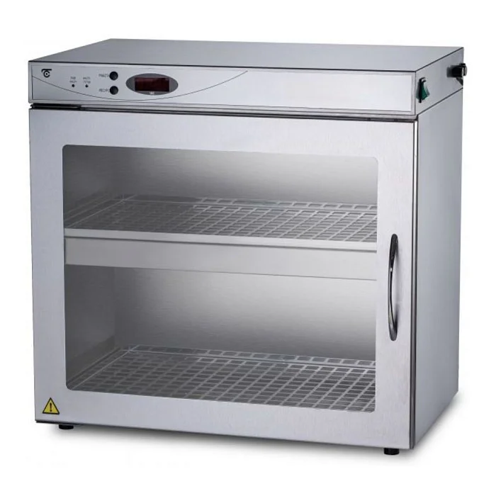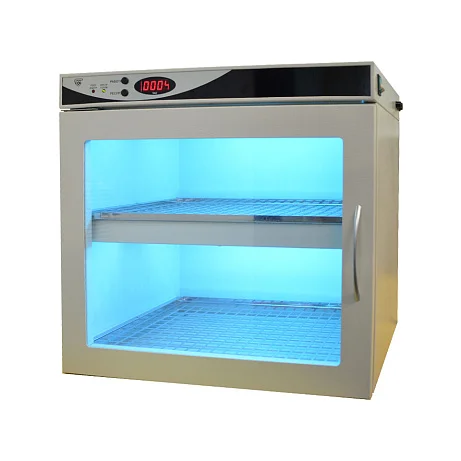 Бактерицидная камера состоит из блока управления на лицевой стороне, дверцы с силикатным стеклом, световым блоком и 2-мя полками.