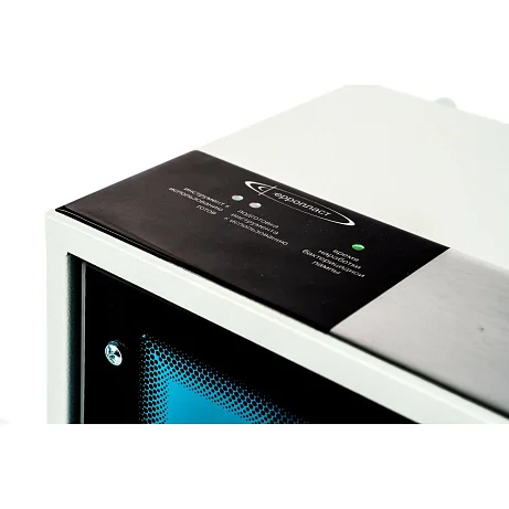 Управление работой камеры осуществляется через интуитивно понятный блок, оснащенный выключателем и двухцветным светодиодным индикатором. Система управления позволяет не только активировать режим поддержания стерильности, но и отслеживать время хранения инструментов, сигнализируя о состоянии готовности. Эта функция значительно упрощает работу персонала и гарантирует, что в использовании будет находиться только инструмент, чья стерильность не вызывает сомнений.
