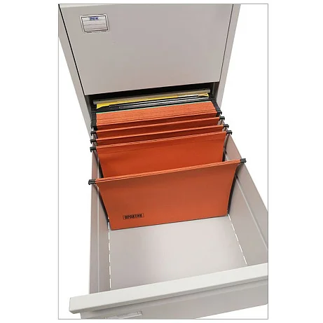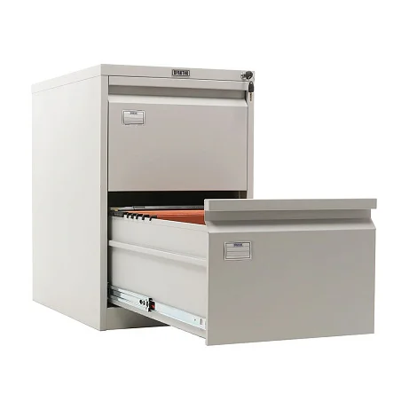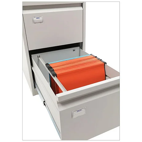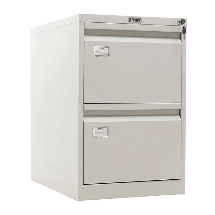 Картотечный шкаф ПРАКТИК AFC-02 предназначен для хранения в порядке документов. Его конструкция предусматривает два выдвижных ящика, каждый из которых выдерживает нагрузку до 30 кг и до 50000 открываний. Шкаф закрывается на центральный замок с 2000 комбинациями. Одновременно из шкафа может быть выдвинут только один ящик, поэтому он не может опрокинуться. Ящики выдвигаются полностью, поэтому найти в них необходимые документы просто, даже если они помещены далеко.