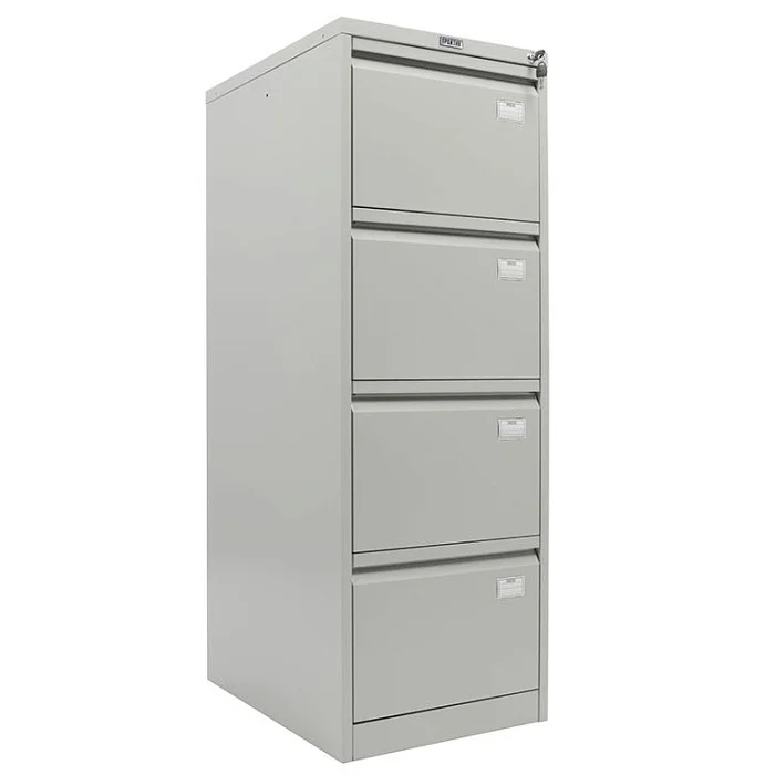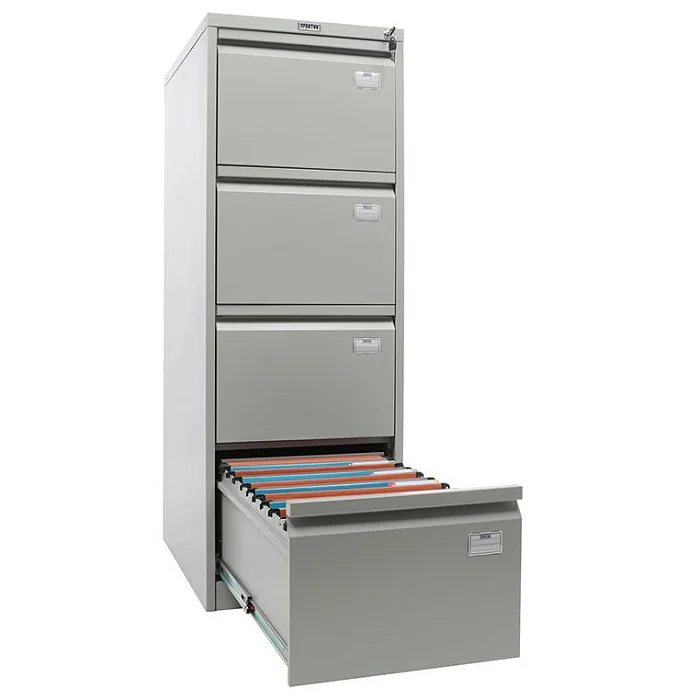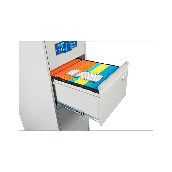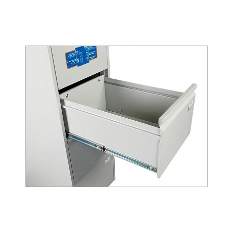 Удобный картотечный шкаф ПРАКТИК AFC-04 позволяет разделить на категории и хранить систематизировано документацию в учреждениях различного типа. Конструкция предусматривает 4 ящика, установленных на телескопические направляющие. Каждый из них полностью выдвигается, поэтому искать документы удобно даже в дальней части ящика. Шкаф запирается, для этого в нем установлен центральный замок, всем документам будет обеспечена сохранность. При максимальной нагрузке до 30 кг каждый ящик способен перенести до 50000 открываний.