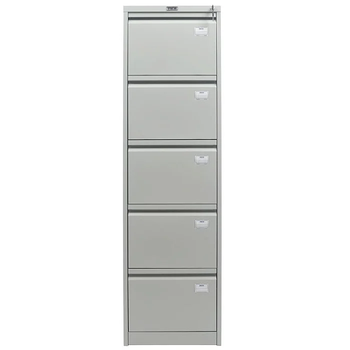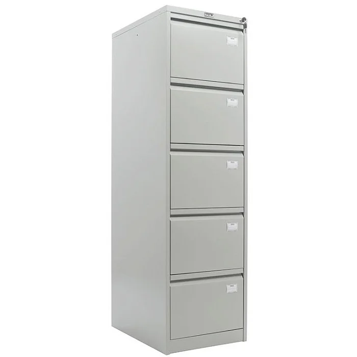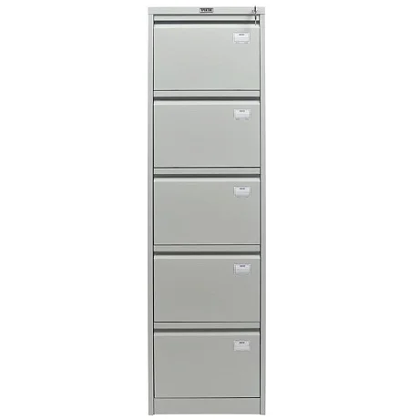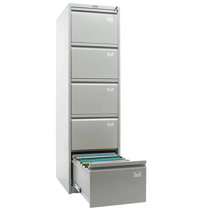 Компактный и при этом вместительный картотечный шкаф ПРАКТИК AFC-05 позволяет хранить документацию из различных категорий отдельно друг от друга, чтобы в любой момент можно было найти необходимую. Для предотвращения опрокидывания одновременно выдвигается только один ящик из пяти. Каждый из них может вмещать большой объем бумаг и активно использоваться, так как выдерживают они до 50000 открываний при нагрузке до 30 кг. Хранимым документам обеспечивается сохранность благодаря центральному замку.
