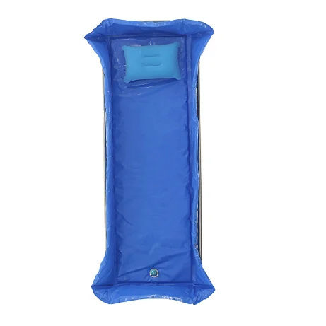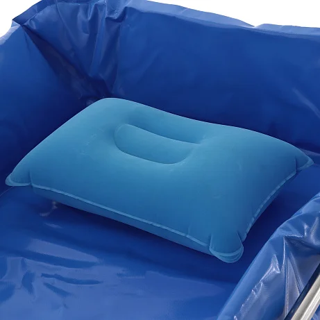 Размер матраса-ванны составляет 184х58х22,5 см, что обеспечивает достаточную глубину и удобство размещения пациента при проведении душевых процедур. В комплекте предусмотрена надувная подушка под голову, повышающая комфорт во время ухода.