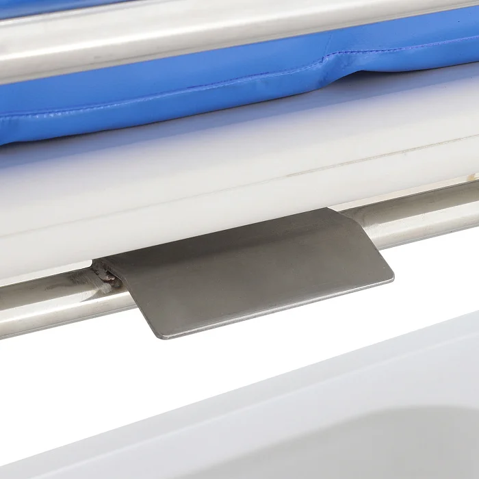Ложе каталки имеет размер 194х64 см и выполнено на основе прочной рамы из высокопрочных алюминиевых труб. Конструкция рассчитана на надежную поддержку пациента и удобство в процессе ухода. Односекционный матрас-ванна из ППУ выполнен в форме пирамиды, имеет дно и высокие борта, благодаря чему вода удерживается в пределах рабочей зоны, а сама процедура проходит аккуратнее и безопаснее.