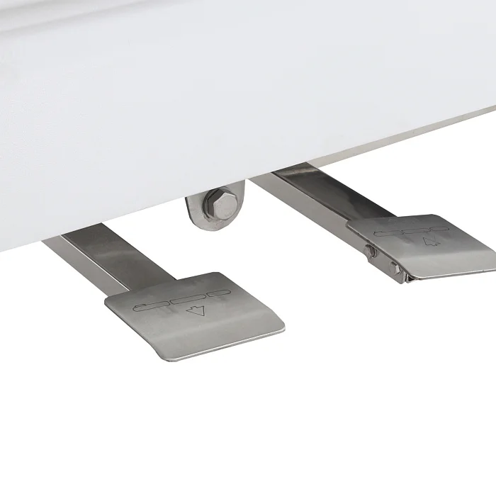 Модель оснащается двумя гидравлическими приводами с педальным управлением подъемом и опусканием. Такая система позволяет плавно изменять положение ложа, адаптируя каталку под рост персонала, условия проведения процедур и клинические задачи. Регулировка высоты делает повседневную работу менее утомительной, а также помогает безопаснее выполнять санитарный уход и перемещение пациента.