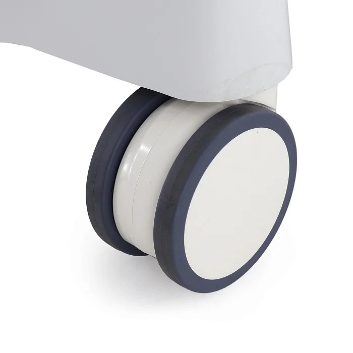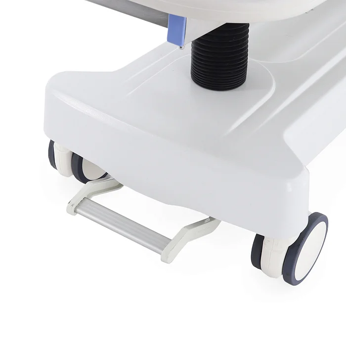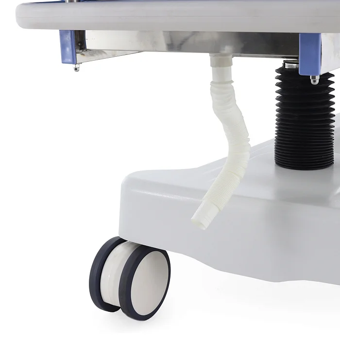 Каталка установлена на четыре двойных самоориентирующихся колеса с полиуретановыми шинами размером 150х90 мм. Колеса вращаются на 360°, благодаря чему оборудование легко разворачивается и уверенно проходит повороты. Для медицинского персонала это означает более точное управление и меньше усилий при перемещении даже в плотной больничной среде.