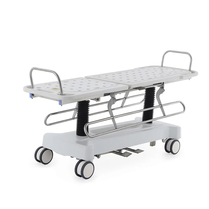 Практическое преимущество: наличие гидравлической регулировки позволяет персоналу быстрее адаптировать каталку под конкретную ситуацию — от гигиенической обработки до транспортировки пациента в нужном положении.