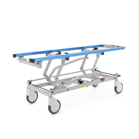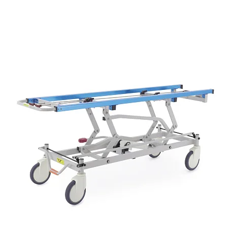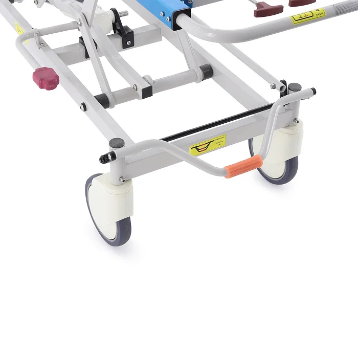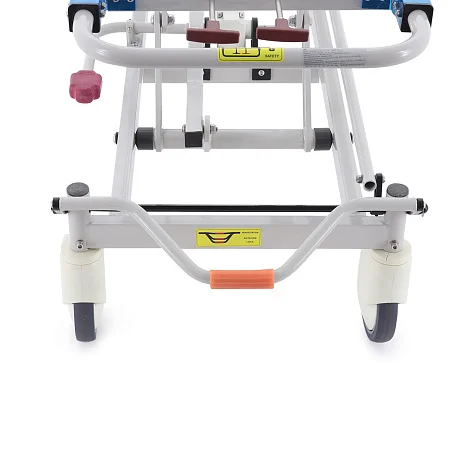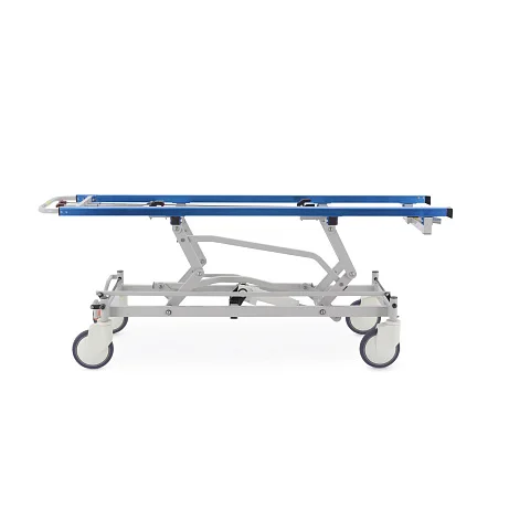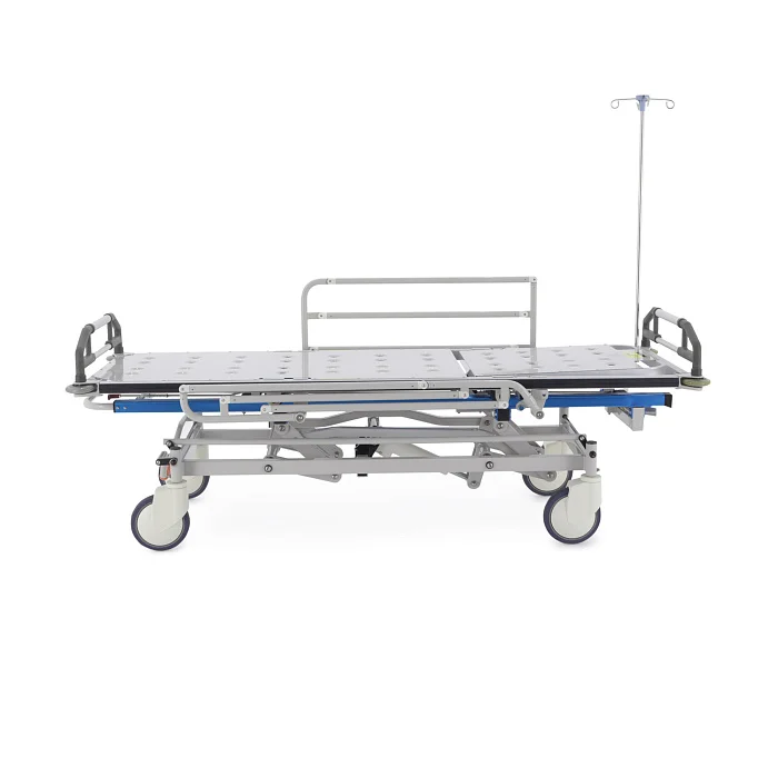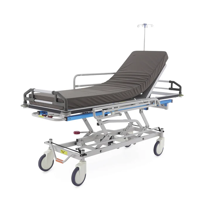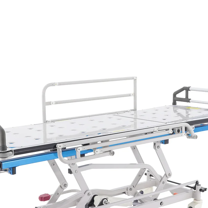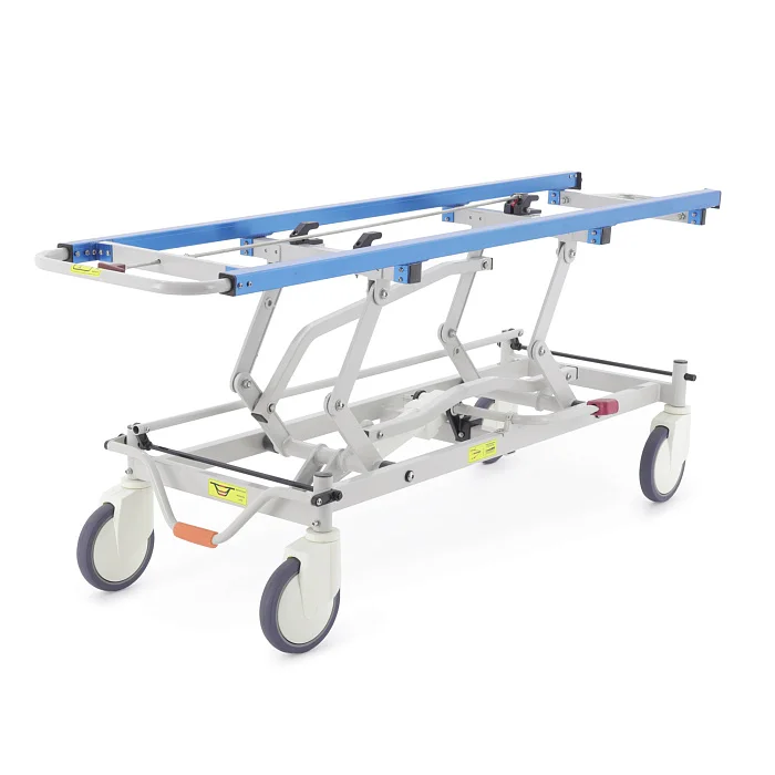 При транспортировке пациента большое значение имеют не только прочность конструкции, но и плавность регулировок. В этой модели подъем и опускание выполняются гидроцилиндрами с педалью управления, поэтому персонал может быстро подстроить высоту под конкретную задачу: перегрузку, перемещение, ожидание перед процедурой или передачу в другое отделение. Регулируемая спинная секция делает положение пациента более физиологичным и комфортным, что особенно важно после операций, при ослабленном состоянии или в процессе длительного перемещения по территории клиники.
