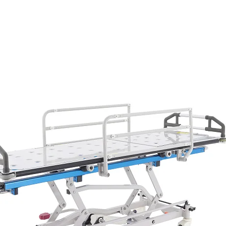 Складные несъемные боковые поручни повышают безопасность во время движения, а роликовые полиуретановые бамперы помогают защитить конструкцию и окружающие поверхности при маневрировании в коридорах, лифтовых зонах и приемных помещениях.