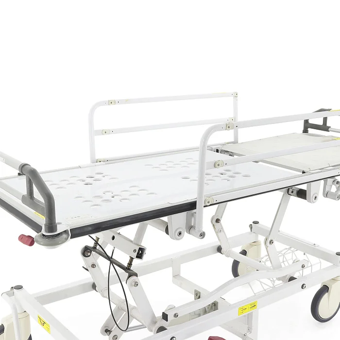 Одно из важных преимуществ этой модели — рентгенопрозрачное ложе, которое позволяет использовать каталку в процессах, где требуется диагностика без лишних перекладываний пациента. Это не только экономит время медицинского персонала, но и снижает физическую нагрузку на сотрудников, а также уменьшает дискомфорт для самого пациента. Дополнительный держатель с пружинным зажимом для рентгеновской кассеты 35 × 43 см делает эксплуатацию ещё более практичной в повседневной работе.