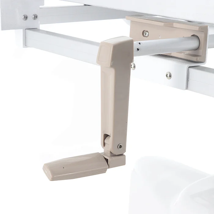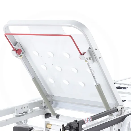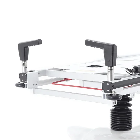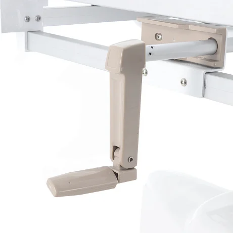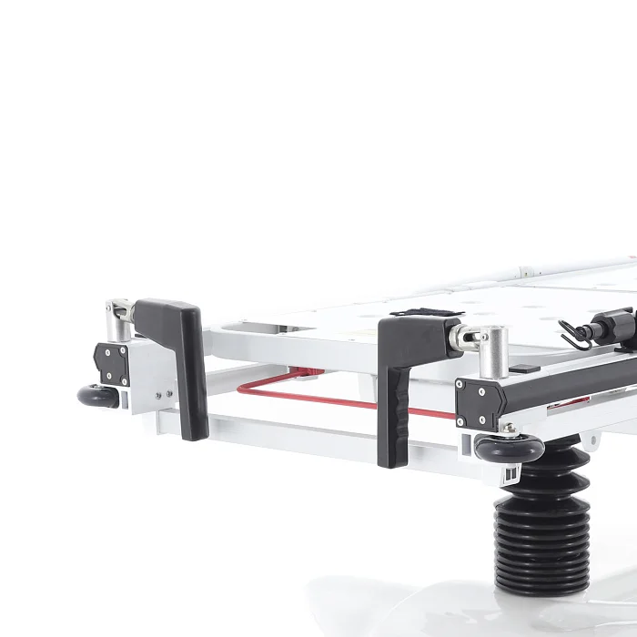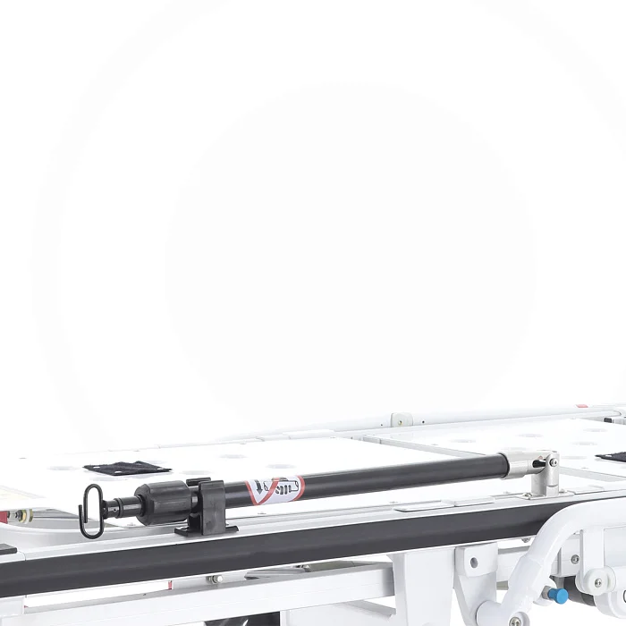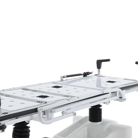 Спинная секция регулируется в пределах 0–52° с помощью газлифтов, что позволяет придать пациенту более комфортное положение при ожидании, наблюдении или подготовке к процедурам. Бедренная секция изменяется в диапазоне 0–32°, а икроножная — до 12° и работает взаимозависимо с бедренной. Такая конструкция помогает более точно подстроить положение тела под состояние пациента и клиническую задачу.