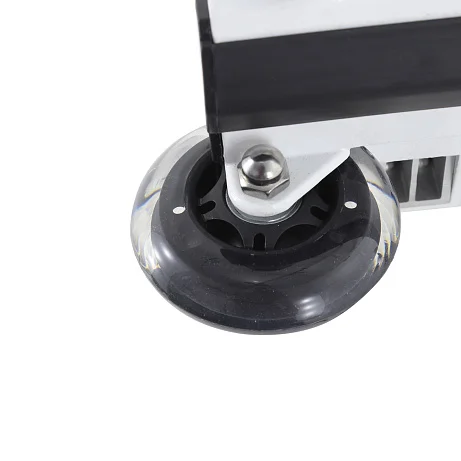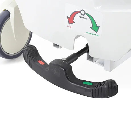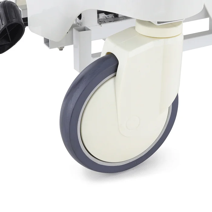 Колесная база рассчитана на уверенное движение по коридорам, лифтовым зонам и палатным помещениям. Самоориентирующиеся колеса с полиуретановыми шинами плавно проходят типичные больничные маршруты, не создают лишнего шума и хорошо выдерживают регулярные перемещения. Центральный тормоз с ножным рычагом позволяет быстро фиксировать каталку сразу по всем колесам, что особенно важно при приеме пациента, проведении манипуляций и пересадке.