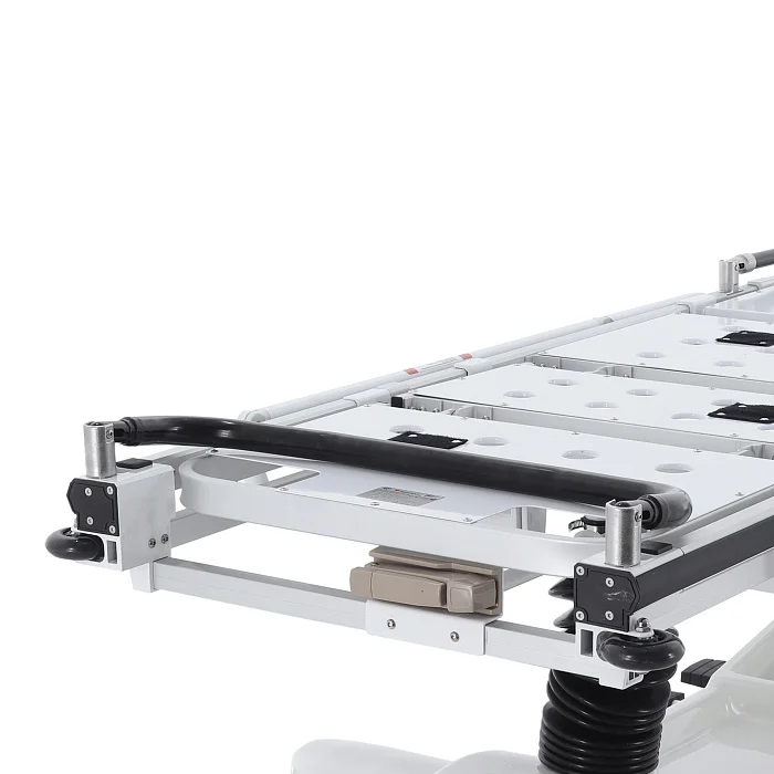 Одна из сильных сторон модели — широкий набор регулировок. Высота ложа изменяется в диапазоне от 64 до 96 см, благодаря чему каталку можно адаптировать под рост персонала, уровень приемной поверхности и особенности конкретной медицинской манипуляции. Это удобно и при транспортировке, и при передаче пациента на кровать, операционный стол или диагностическое оборудование.