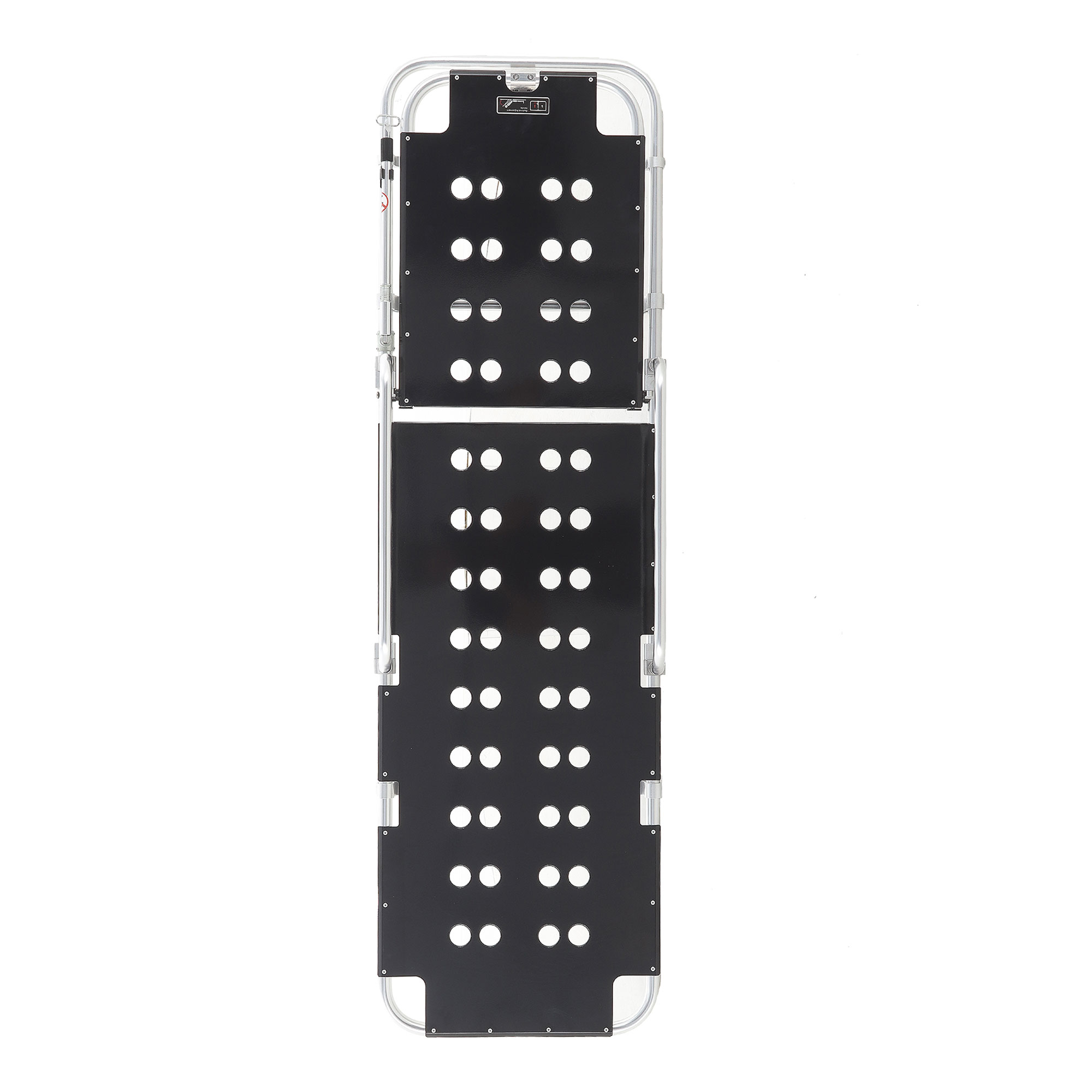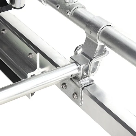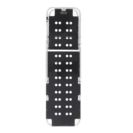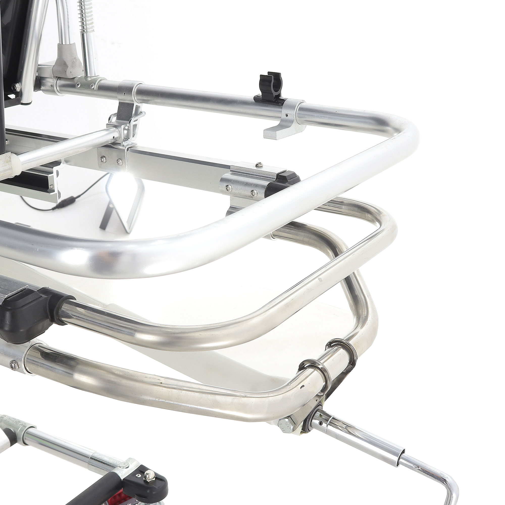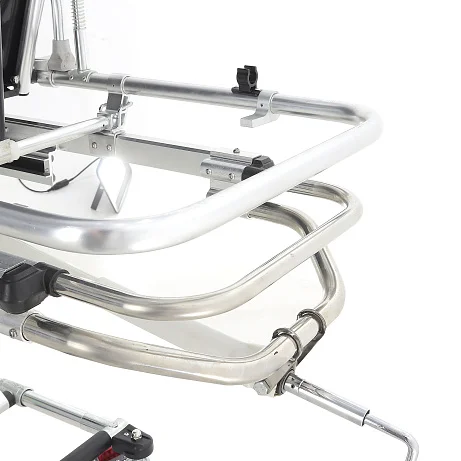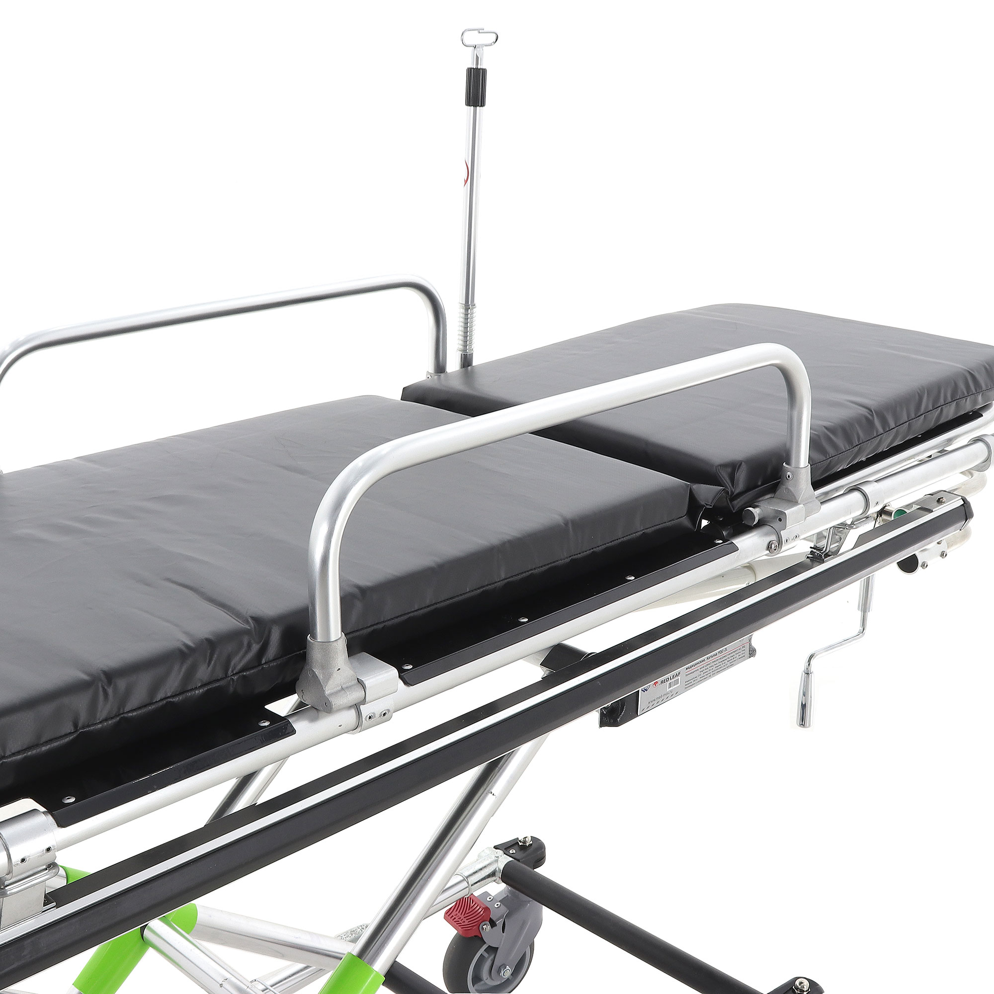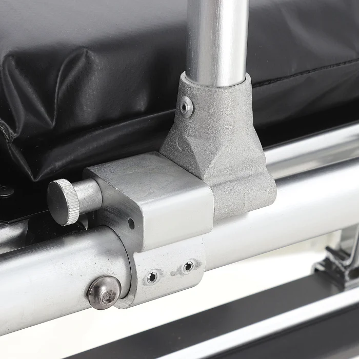 Откидные несъёмные боковые поручни выполнены из прочных алюминиевых труб Ø22 мм, размер поручней — 60×18 см. Они помогают удерживать безопасный «контур» ложа при транспортировке и при необходимости быстро опускаются, чтобы не мешать доступу персонала.