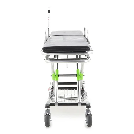 Дополнительный плюс — встроенная корзина для белья. Она помогает держать под рукой всё необходимое и поддерживать порядок во время перемещений по отделению. Каталка рассчитана на ежедневное использование и хорошо подходит для больниц, клиник и других медучреждений, где важны организованность и комфорт пациента.