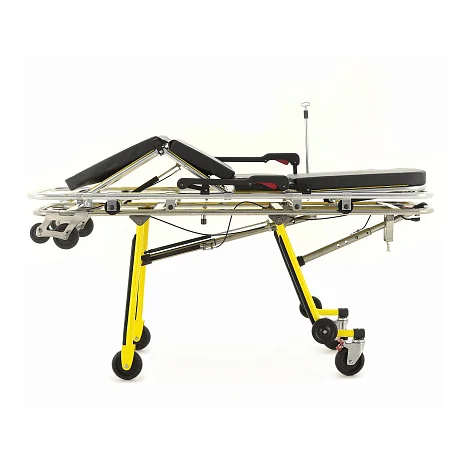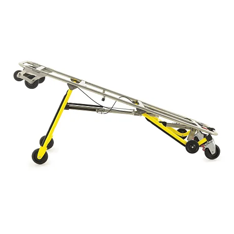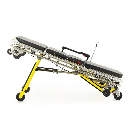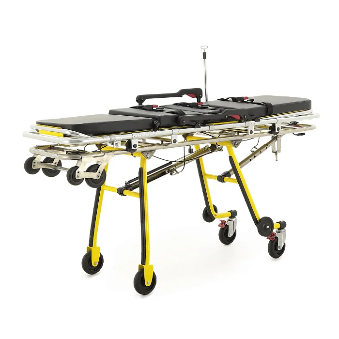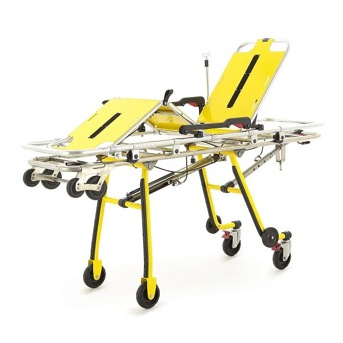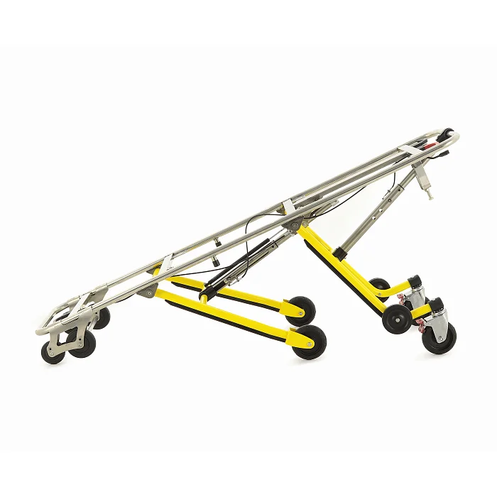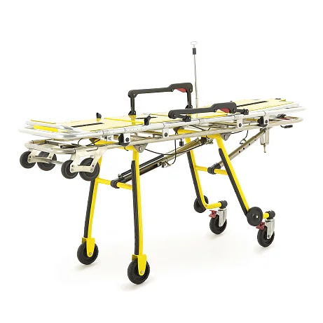 Механическое независимое складывание опор для каждой стороны упрощает маневрирование и позволяет более уверенно выполнять погрузочно-разгрузочные операции. Передняя и задняя опоры автоматически раскладываются и фиксируются при выкатывании каталки из автомобиля скорой помощи, что заметно ускоряет подготовку к транспортировке пациента. Дополнительную помощь персоналу обеспечивает центральная разгрузочная газовая пружина, которая облегчает раскладывание передней опоры и делает работу с каталкой более плавной.