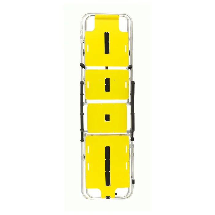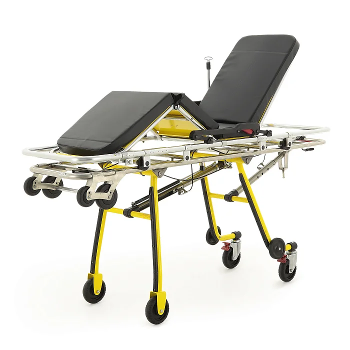 Носилки имеют 4 секции, из которых 3 подвижные. Секция спины регулируется в диапазоне от 3° до 65° с помощью газлифта, что позволяет адаптировать положение пациента под клиническую задачу. Секция бедер изменяет положение от 0° до 34°, также на газлифте, а икроножная секция поднимается автоматически вместе с бедренной, в диапазоне от 0° до 32°. Такая конфигурация помогает комфортно размещать пациента, выбирать удобное положение при транспортировке и создавать условия для более бережной перевозки.