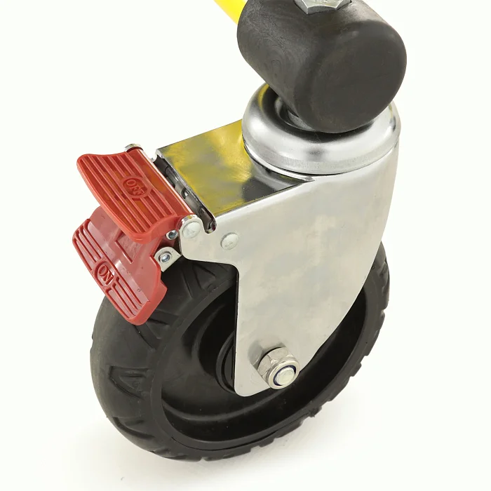 Опорные колеса в количестве четырех штук имеют размер 147×41 мм, при этом задняя пара оснащена индивидуальными тормозами. Это особенно важно при остановке на неровной поверхности, во время приемки пациента или выполнения дополнительных манипуляций. Тележка сохраняет устойчивость, а медицинский персонал получает больше контроля над ситуацией.