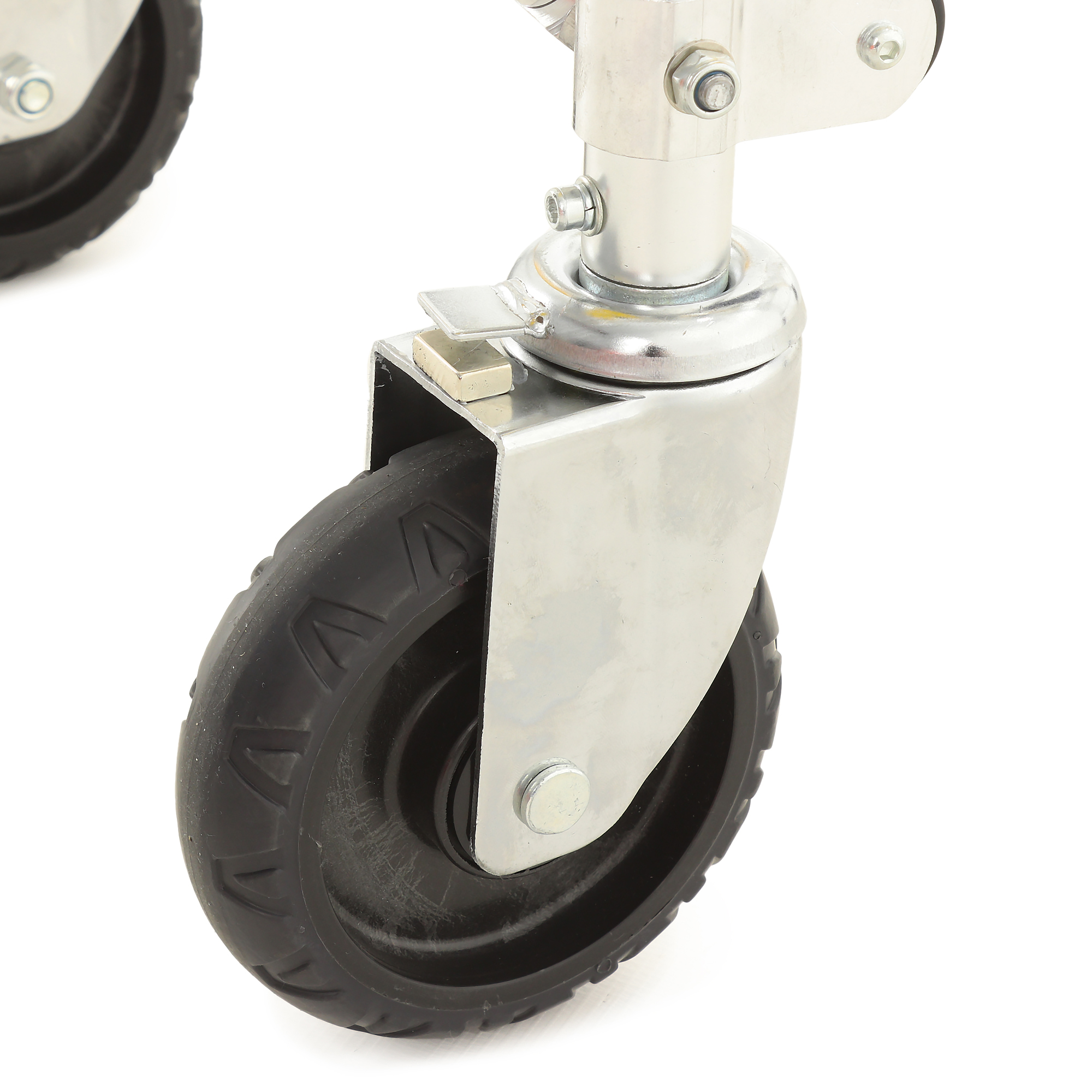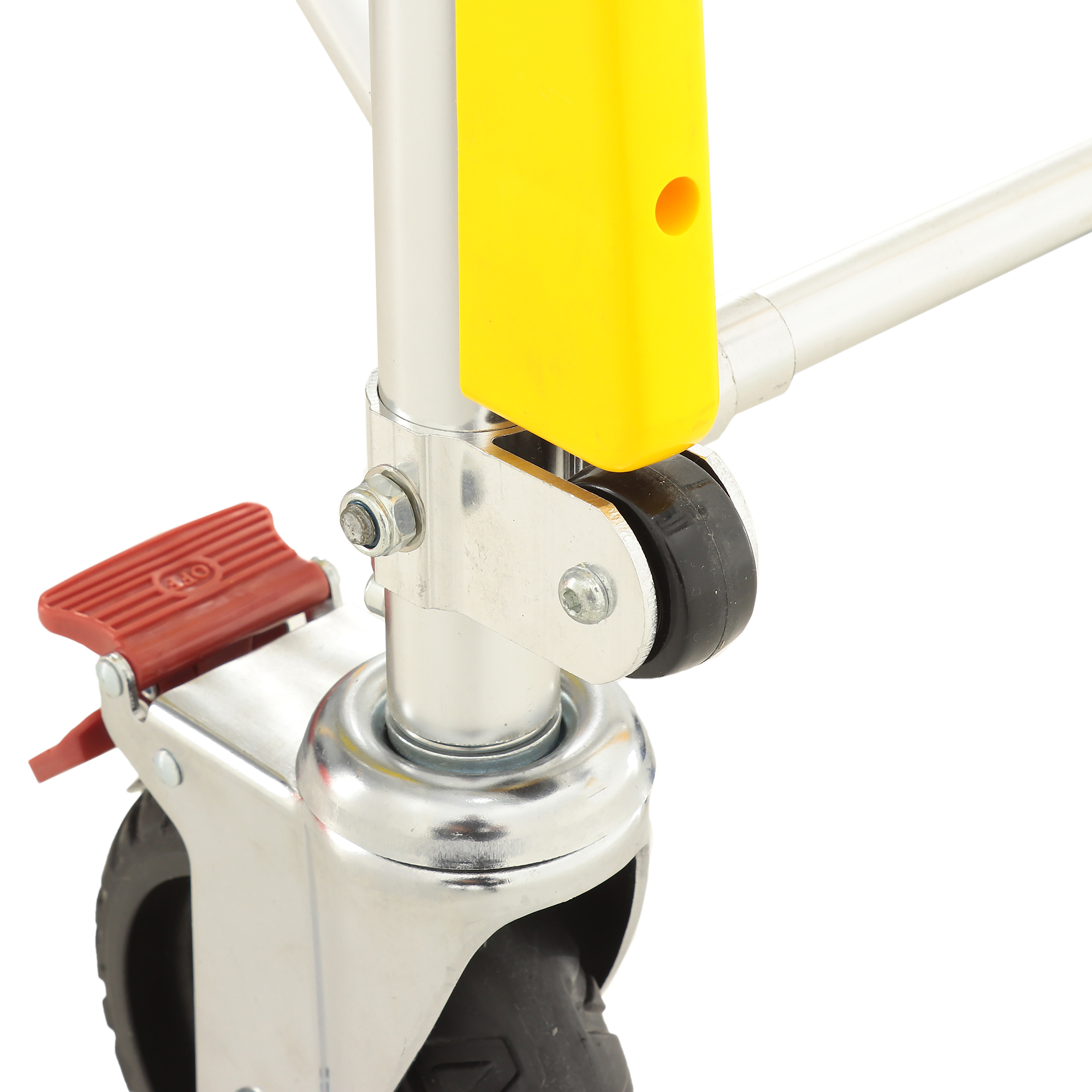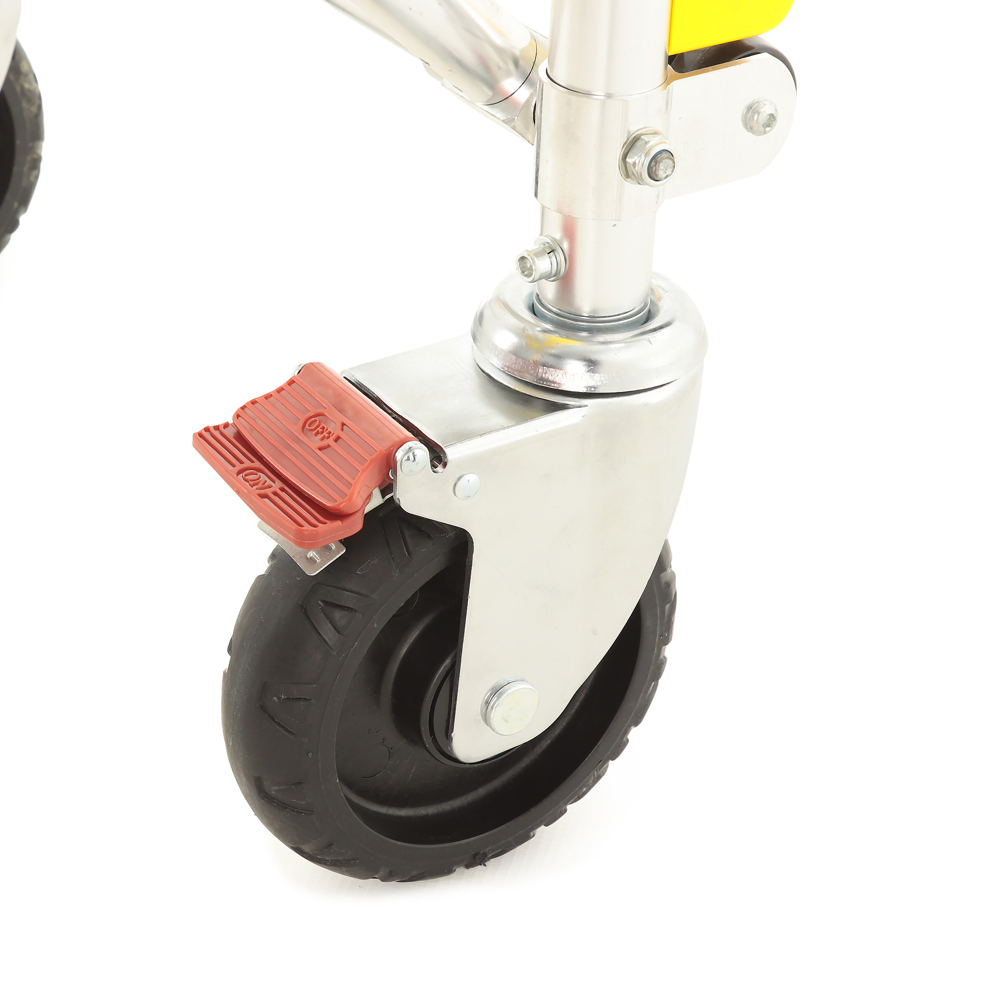 Каталка рассчитана на динамичную работу: разные типы колес и опор помогают сохранять стабильность при движении по неровным покрытиям и при загрузке в автомобиль. Передняя пара оснащена индивидуальными тормозами — это удобно, когда нужно зафиксировать положение на пандусе или при остановке для манипуляций. Отдельно стоит отметить магнитную ориентацию задних колес: она помогает «держать курс» и делает движение более предсказуемым в узких пространствах.