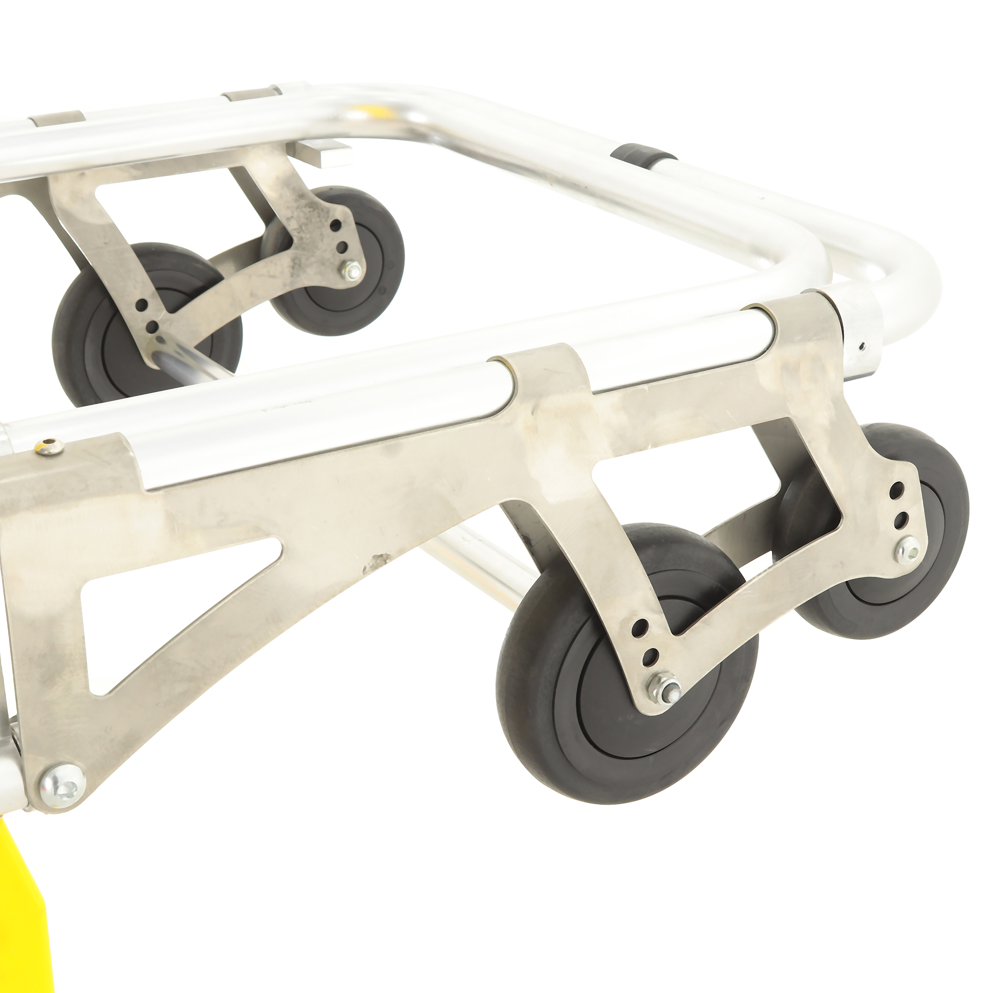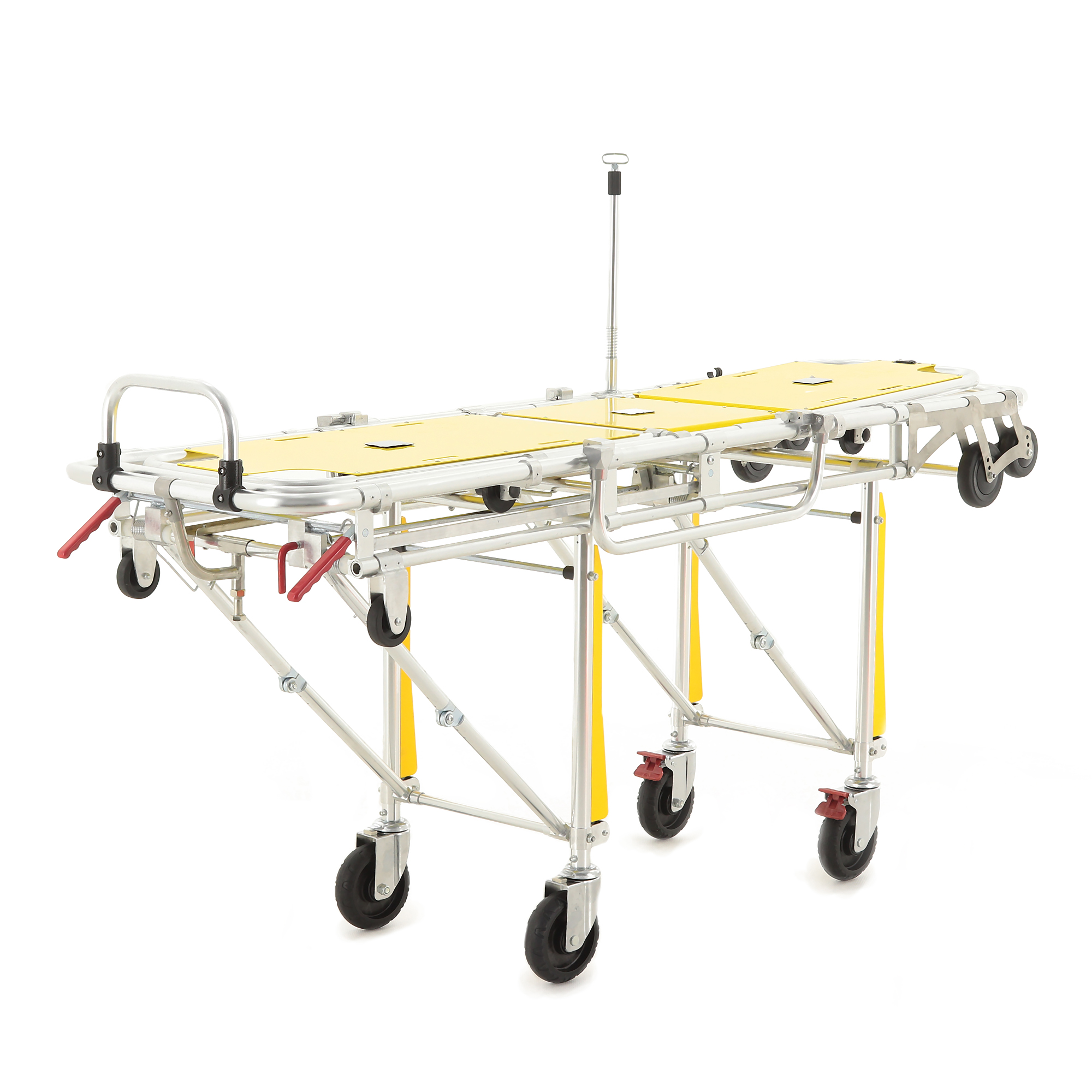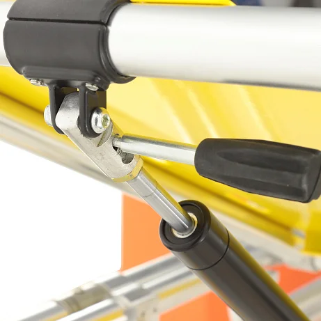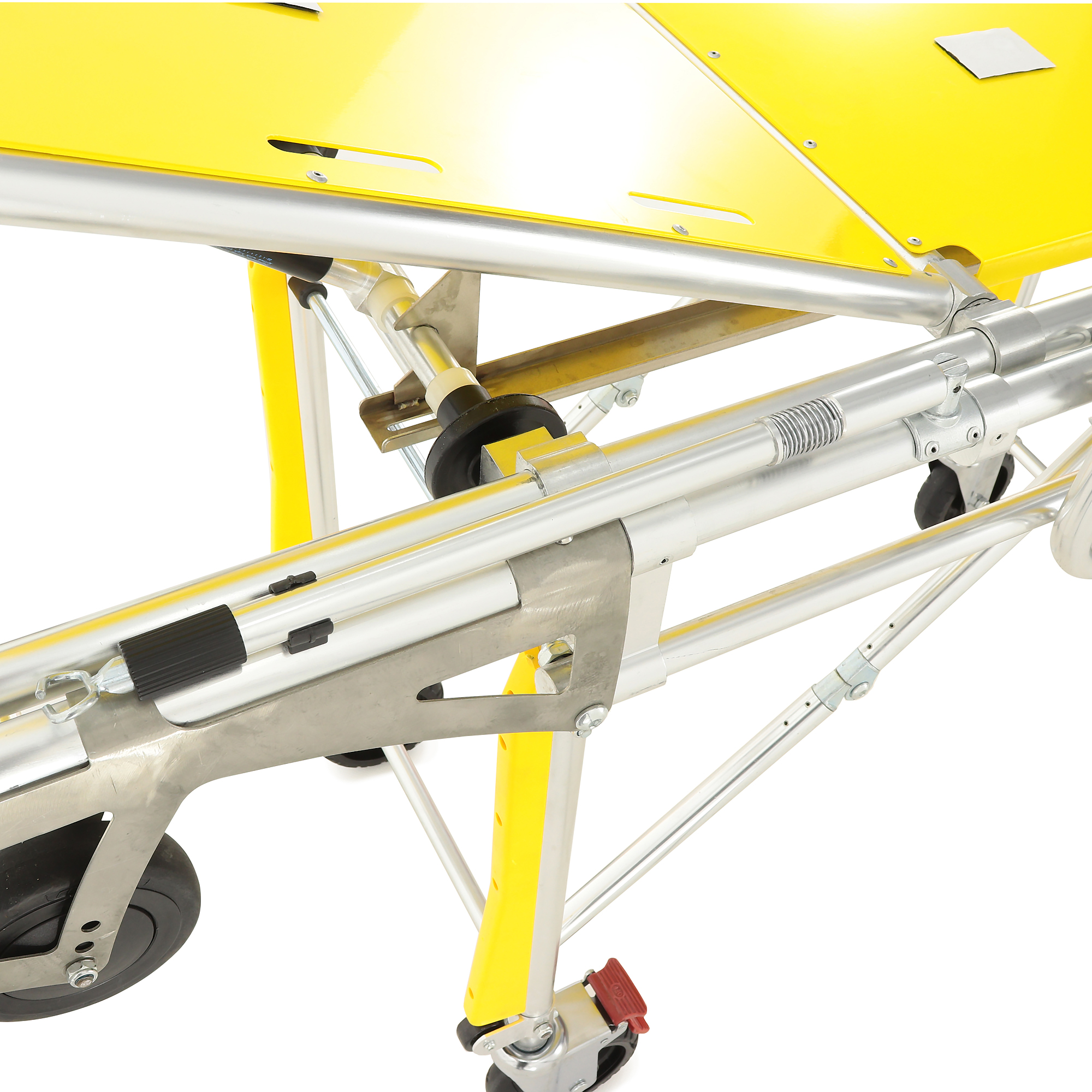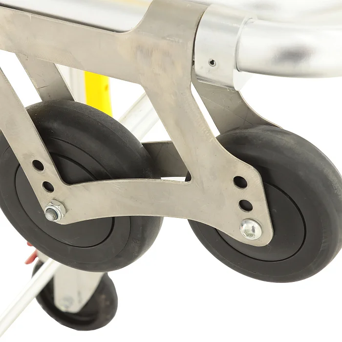 Рама выполнена из двойного высокопрочного алюминиевого профиля — это баланс прочности и разумного веса, который важен в ежедневной эксплуатации АСМП. Складывающиеся опоры оснащены системой автоматической блокировки: при работе с каталкой механизмы фиксируются без лишних операций, а при необходимости — позволяют быстро перевести изделие в транспортное положение.