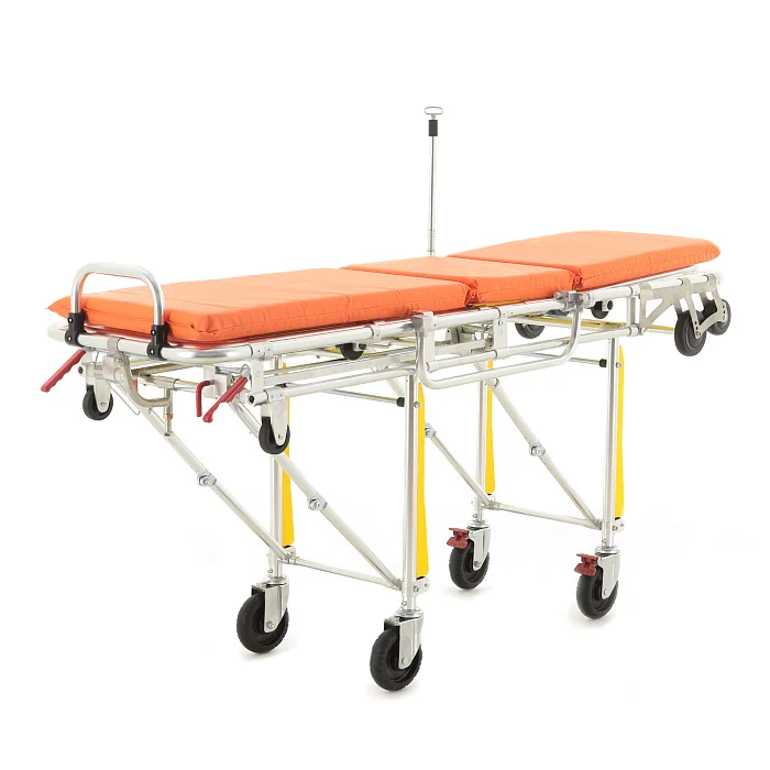 Каталка рассчитана на регулярную работу в условиях скорой помощи: поверхности и узлы удобны для санитарной обработки и планового обслуживания. Для сохранения ресурса механизмов рекомендуется регулярно проверять корректность работы фиксаторов и тормозной системы, а также контролировать состояние ремней и подвижных соединений после интенсивных смен.