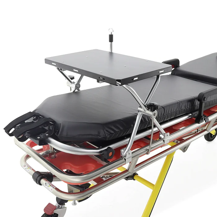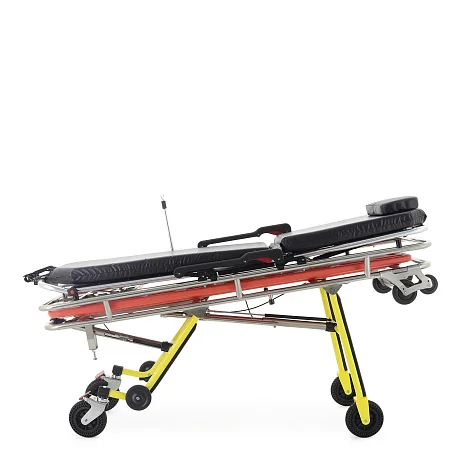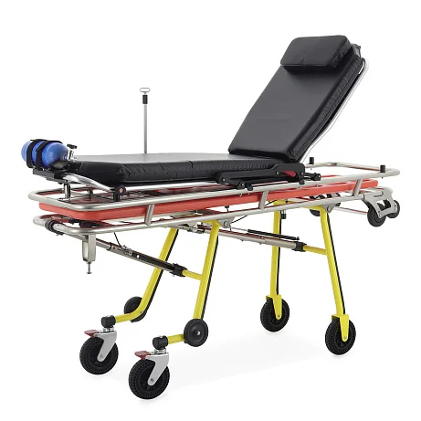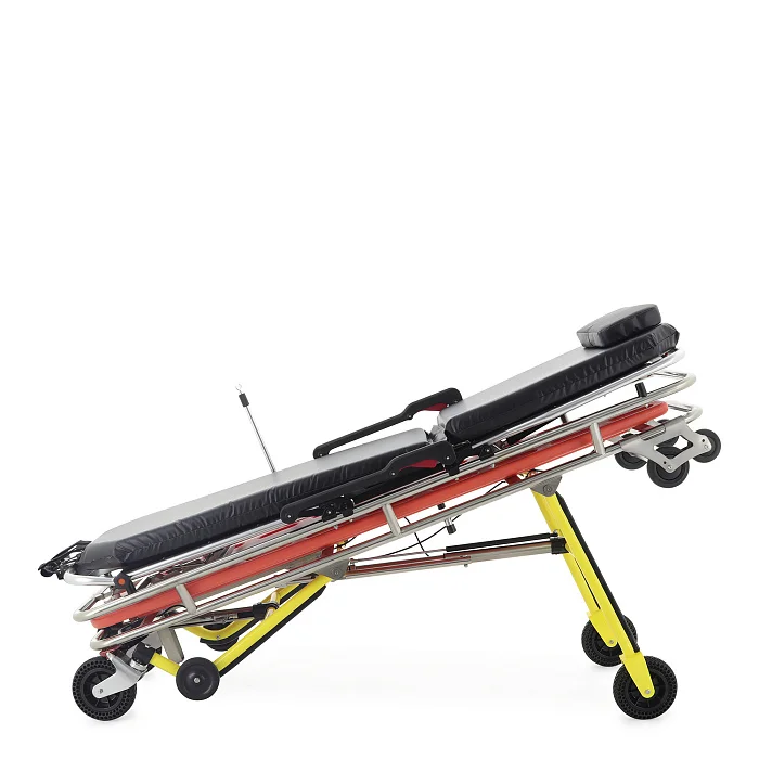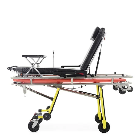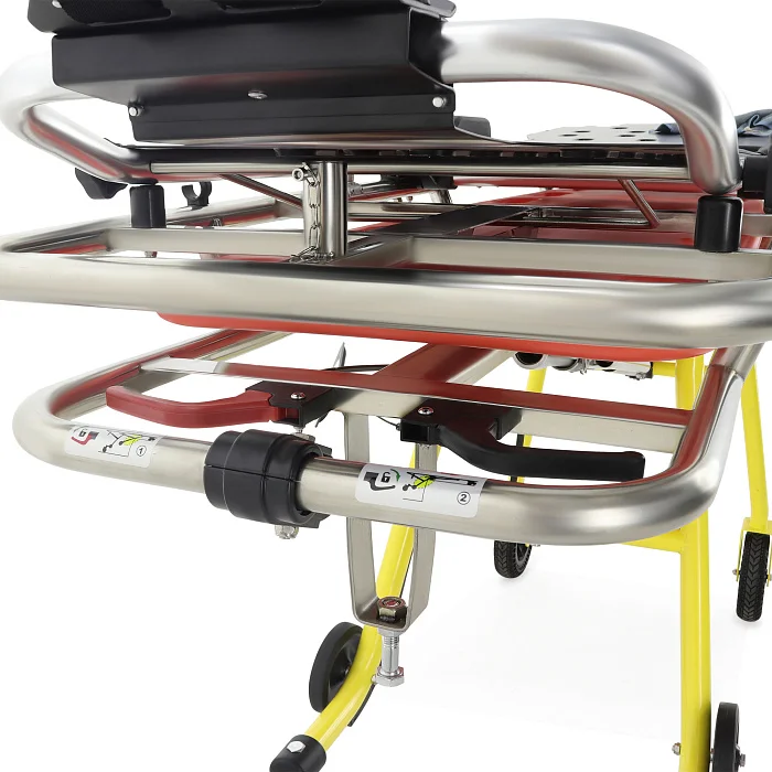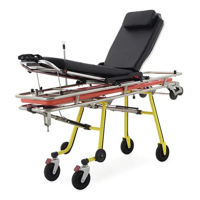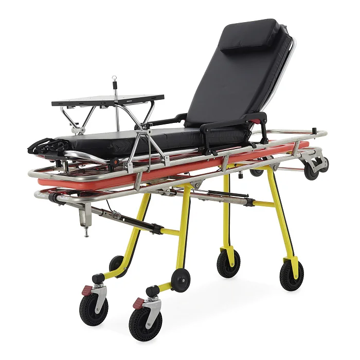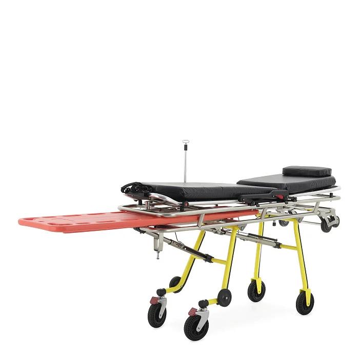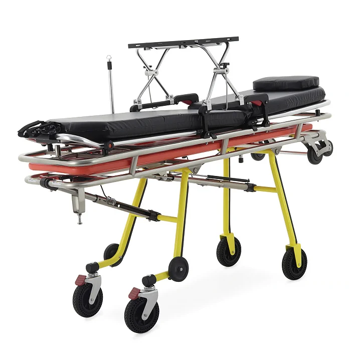 Механическое складывание опор выполнено независимо для каждой опоры, а при выкатывании каталки из автомобиля передняя и задняя опоры автоматически раскладываются и фиксируются. Это решение повышает скорость работы бригады, делает эксплуатацию более предсказуемой и помогает снизить физическую нагрузку на персонал.