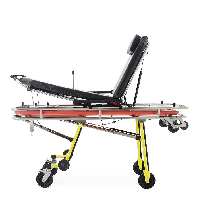 Несъёмные носилки имеют трехсекционную конструкцию, благодаря чему медицинский персонал может подобрать оптимальное положение пациента в зависимости от клинической ситуации. Спинная секция регулируется в диапазоне от 3 до 63 градусов и оснащена газлифтом, что делает подъем плавным и удобным. Ножная секция регулируется механически, имеет четыре фиксированных положения в диапазоне от 0 до 14 градусов.
