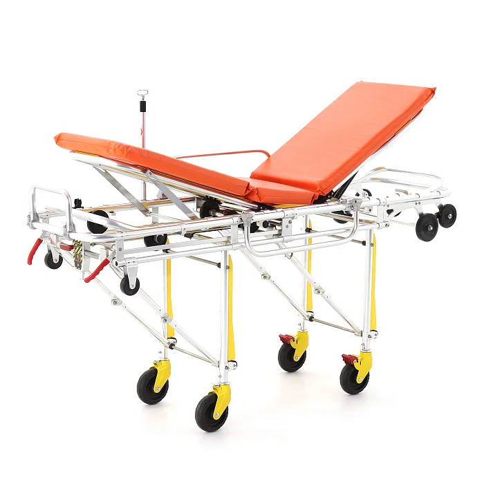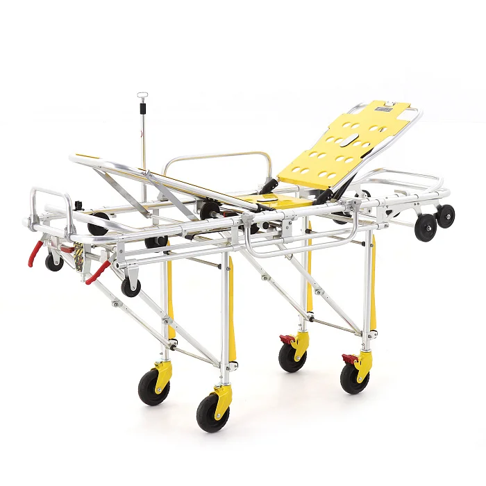 Гидравлический привод помогает работать плавно и контролируемо, особенно когда требуется корректировать положение пациента при транспортировке или при передаче в приёмное отделение. Головная секция наклоняется до 65°, что удобно при одышке, тошноте, необходимости полусидячего положения и просто для повышения комфорта в пути.