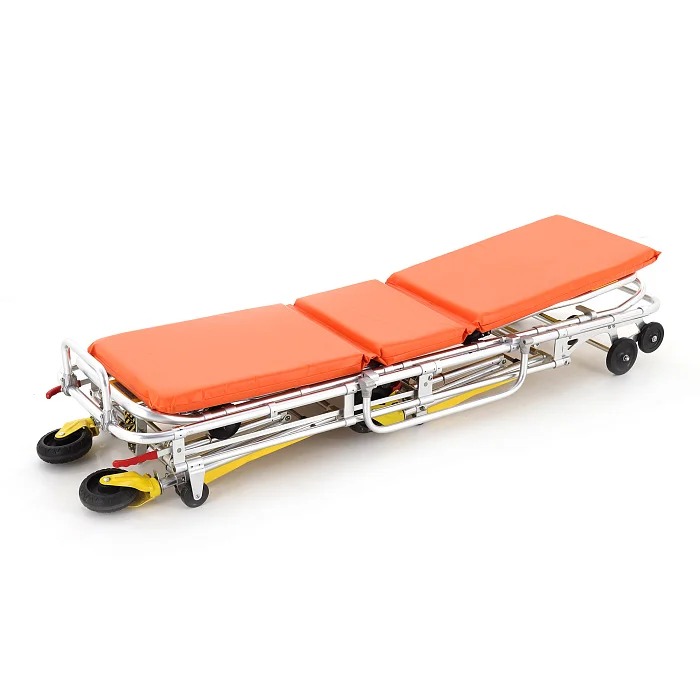 Каталка для автомобилей скорой медицинской помощи Med-Mos YDC-3A со съемными носилками лёгкая, удобная и мобильная, беспрепятственно заезжает в автомобиль скорой помощи на колёсиках, перемещать можно при помощи алюминиевых поручней, которые расположены четырёх сторон. Алюминиевый каркас прочный и надёжный обеспечит долговечность и большой срок эксплуатации конструкции. Колёса выполнены из высококачественной резины, что позволяет использовать каталку по неровной поверхности без их повреждения. Носилки являются съёмными, что даёт возможность забирать пациента прямо из кровати и уже потом нести в то место, где стоит каталка. В комплект входят инфузионная стойка и матрац из водоотталкивающего материала.