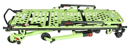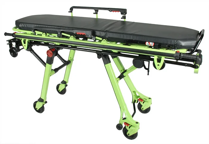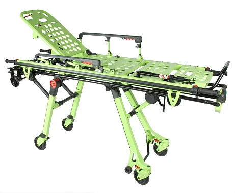 Каталка для автомобилей скорой медицинской помощи со съемными носилками Med-Mos YDC-3FWF удобная и мобильная, беспрепятственно заезжает в автомобиль скорой помощи на колёсиках, перемещать можно при помощи алюминиевых поручней, которые расположены трёх сторон. Алюминиевый каркас прочный и надёжный обеспечит долговечность и большой срок эксплуатации конструкции. Колёса выполнены из высококачественной резины, что позволяет использовать каталку по неровной поверхности без их повреждения. Носилки являются съёмными, что даёт возможность забирать пациента прямо из кровати и уже потом нести в то место, где стоит каталка. Ложе состоит из 3 регулируемых секций.