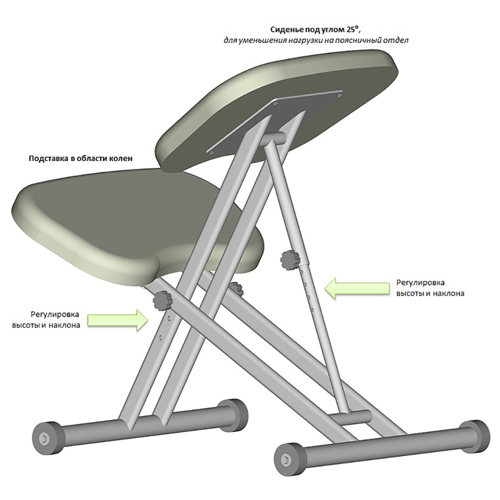 - Сиденье стула находится в положении под углом 25 градусов. Уменьшает нагрузку на поясничный отдел. Спина без усилий находится в правильном положении.