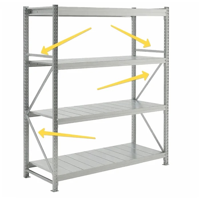 Стеллажи — это не просто полки, а каркас вашей логистики. Неправильно соединённые элементы дают люфт, ускоряют износ болтов и создают риск потери груза. MS Pro 300x80 решает эти задачи: сочетание горизонтальных и диагональных связей распределяет нагрузки равномерно и исключает боковые смещения. Результат — стабильность и безопасность при высоких эксплуатационных нагрузках.