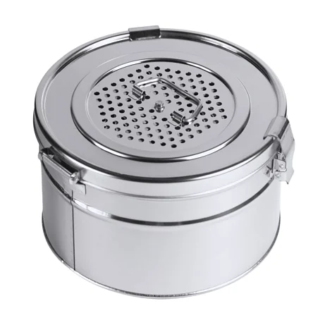 Круглые стерилизационные коробки с фильтрами КСКФ-10 Ока-Медик, выполненные из высококачественной нержавеющей стали. Эти коробки предназначены для надежного размещения перевязочных материалов, хирургического белья, инструментов и других медицинских изделий. Они идеально подходят для стерилизации в паровых стерилизаторах, а также для хранения и транспортировки стерилизованных изделий в стерильном состоянии. Стерилизационные коробки КСКФ-10 обеспечивают надежную защиту медицинских инструментов и расходных материалов, гарантируя их безопасность и эффективность использования.