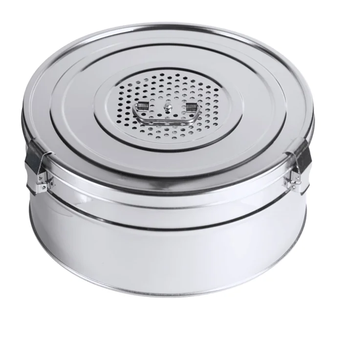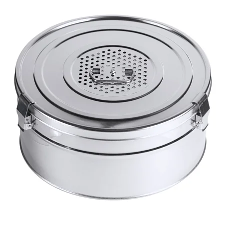 Коробка стерилизационная Ока-Медик КСКФ-18 незаменима для хранения хирургического белья, медицинского инструмента, других материалов, а также их стерилизации в паровом стерилизаторе. Круглая коробка из нержавеющей стали объемом 18 литров имеет также сменные хлопчатобумажные фильтры для дна и крышки. Используется в операционных, перевязочных и манипуляционных кабинетах. По самой выгодной цене данную модель стерилизационной коробки можно приобрести в специализированном московском магазине МедМебель с недорогой доставкой.
