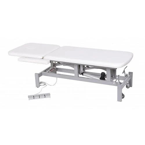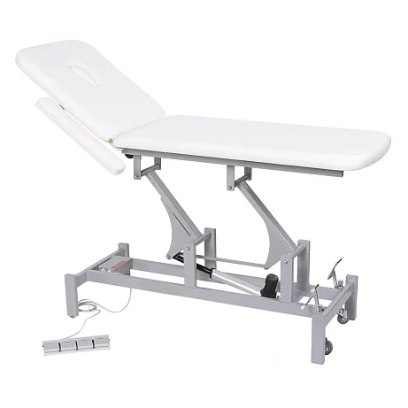 Кушетка процедурная ОДК-2 ("Ондеви-2") с ножной педалью управления. Кушетка оснащена отверстием для лица, а также откидными подлокотниками. Регулировка высоты кушетки: электрическая (электропривод). Регулировка угла наклона спинки: до 60º, электрическая (электропривод). Способ регулировки - ножная педаль управления. Для удобства перемещения кушетка оснащена колесиками. Для большей устойчивости при процедуре массажа, колесная пара поднимается и кушетка устойчиво становится на ножки. Основание кушетки покрашено порошковой краской (цвет по каталогу RAL). Кушетка оснащена двумя электроприводами итальянского производства (Ciar S.p.A.), регулирующим высоту кушетки. Обивка выполнена из высококачественной экокожи, изготовленной в Германии (Konrad Hornschuch AG) – устойчивый к дезинфицирующим растворам износостойкий «дышащий» материал с широкой цветовой гаммой. Регистрационное удостоверение Росздравнадзора РФ № РЗН 2019/8260 от 03.04.2019. Приказ от 03.04.2019 № 2539.