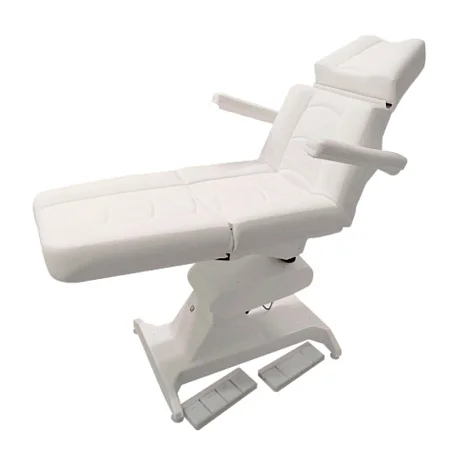 Кресло процедурное (для мезотерапии) с электроприводом ОД-4 (“Ондеви-4 Мезо”) с педалями управления. Данное кресло специально разработано для проведения процедур нехирургической подтяжки контуров лица и тела с помощью различных нитей. Регулировка подголовника в обе стороны позволяет обеспечить более удобный доступ к лицу пациента, в особенности, к зоне второго подбородка и шеи. Запрокидывая голову назад, пациент может лежать длительное время в более удобном положении, т.к. мышцы задней поверхности шеи расслабляются, что важно при проведении нитевого лифтинга, который может занимать 1-1,5 часа. Регистрационное удостоверение Росздравнадзора РФ № РЗН 2019/8260 от 03.04.2019. Приказ от 03.04.2019 № 2539.