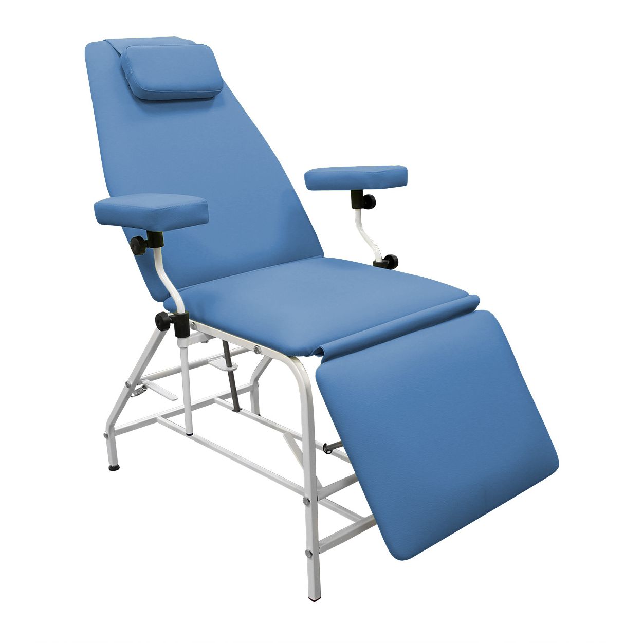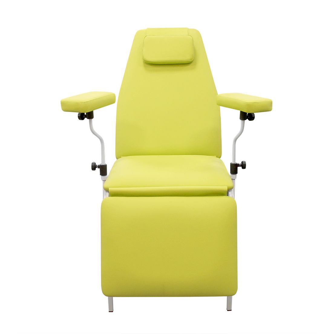 Подлокотники регулируются по высоте и вокруг своей оси — медперсоналу проще настроить упор под руку пациента и обеспечить правильное положение при заборе крови или инфузии.