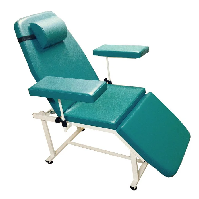 Кресло пациента процедурно - смотровое МД-КПС-2 с валиком под голову (донора). Кресло донора 3-х секционное с фиксированной высотой. Используется в процедурных кабинетах, на станциях переливания крови и гемодиализных центрах. Раскладывается в позицию стола.