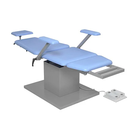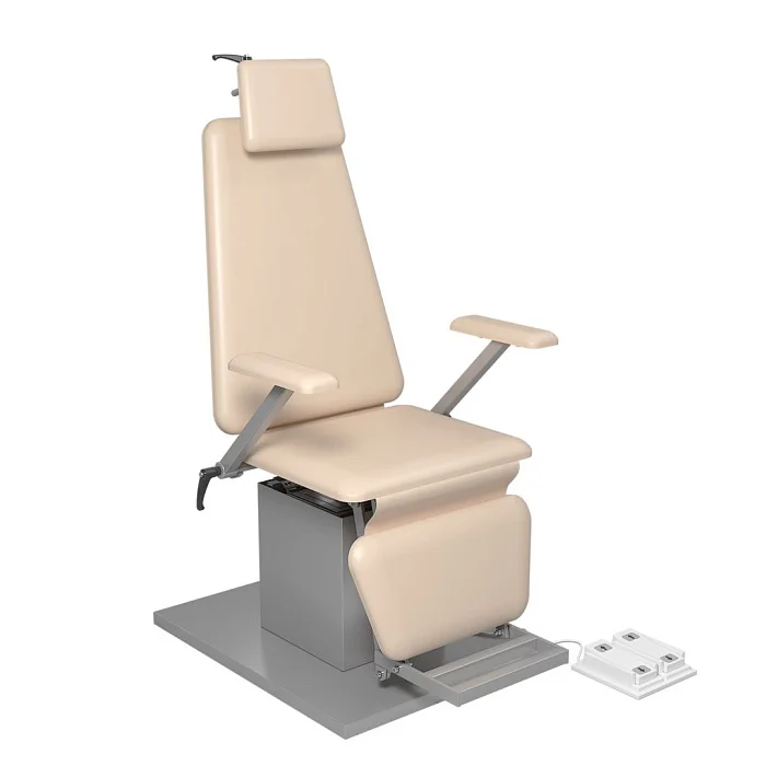 Модель дает возможность плавно поднимать кресло и изменять угол наклона спинной секции с помощью электрических приводов. Управление осуществляется ножными педалями, что особенно удобно в процессе работы: врачу не нужно отвлекаться на лишние движения руками, а значит, сохраняется концентрация на пациенте и процедуре.