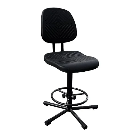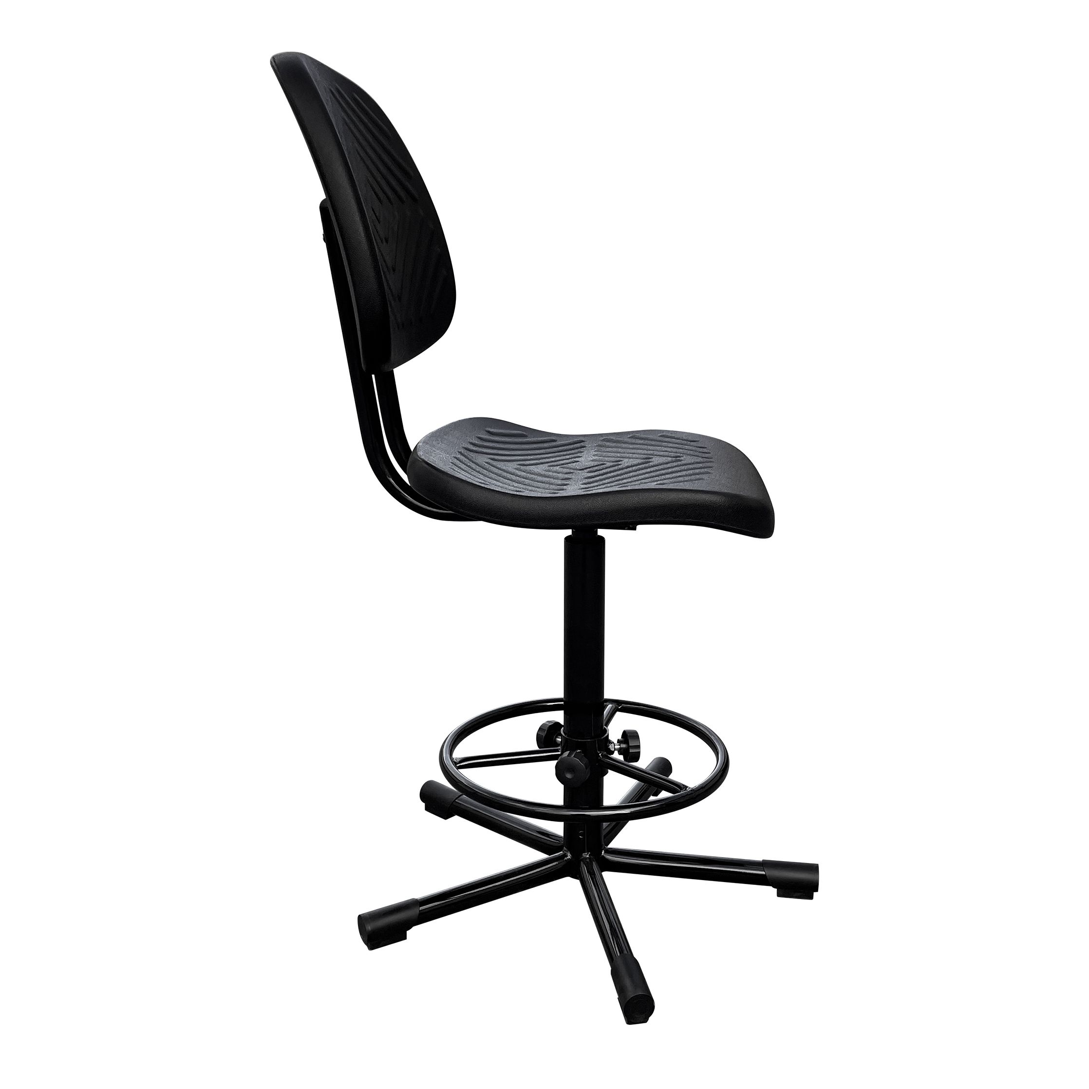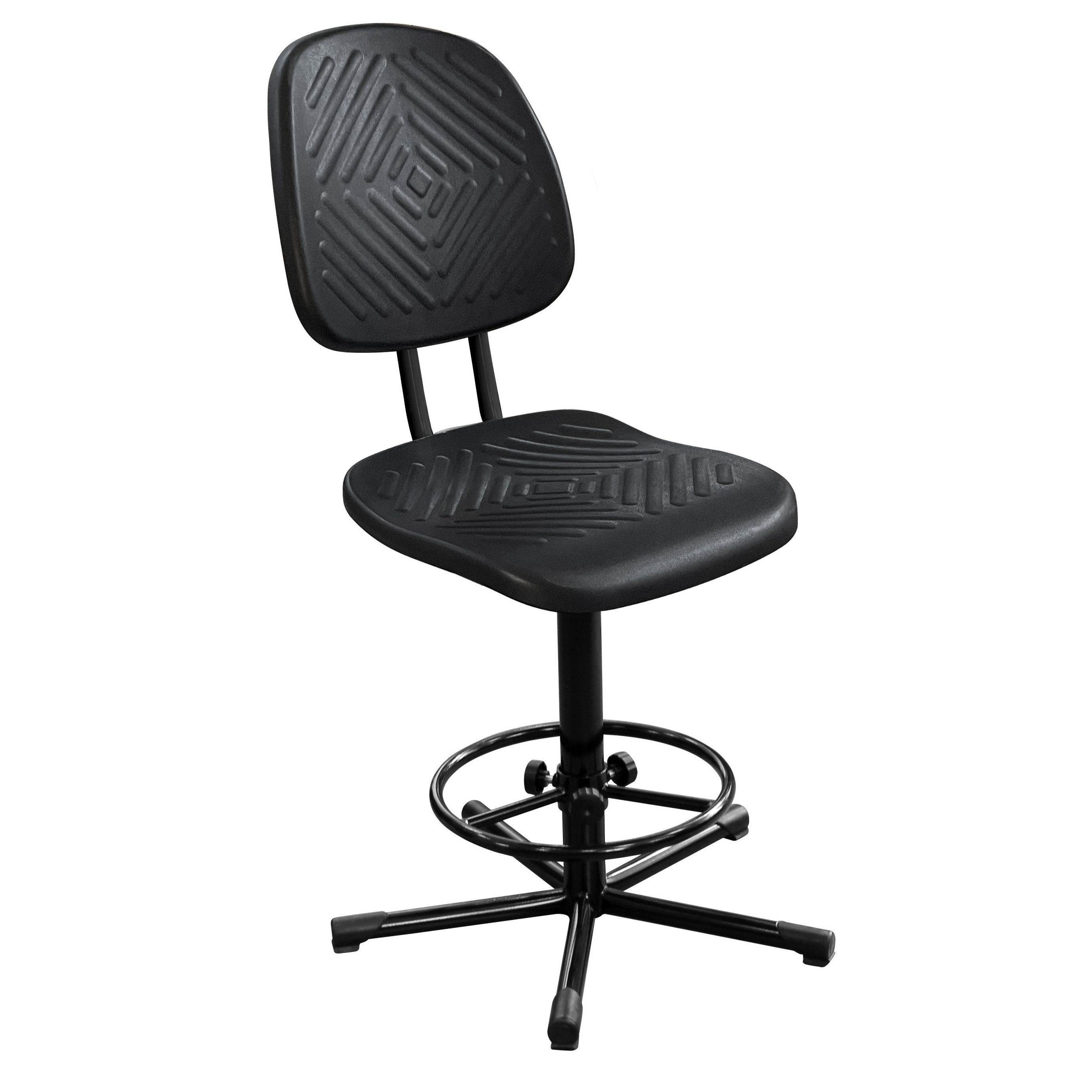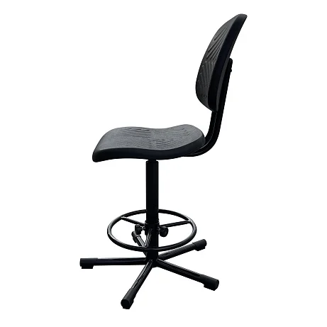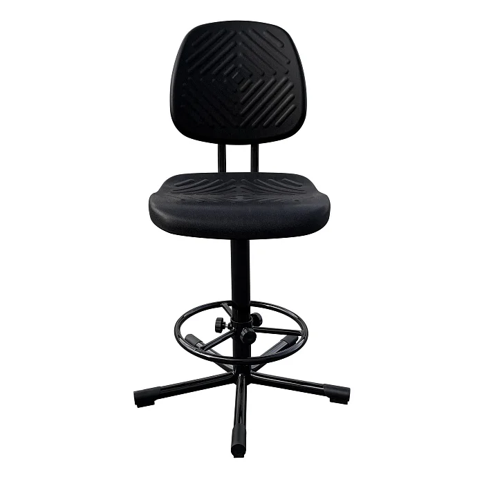 Устойчивая винтовая опора обеспечивает надёжную фиксацию, а регулируемое по высоте кольцо-опора для ног помогает удобно разместиться при работе за высокими столами от 900 мм и выше. Высота сиденья: 560–680 мм Основание оснащено мебельными заглушками.